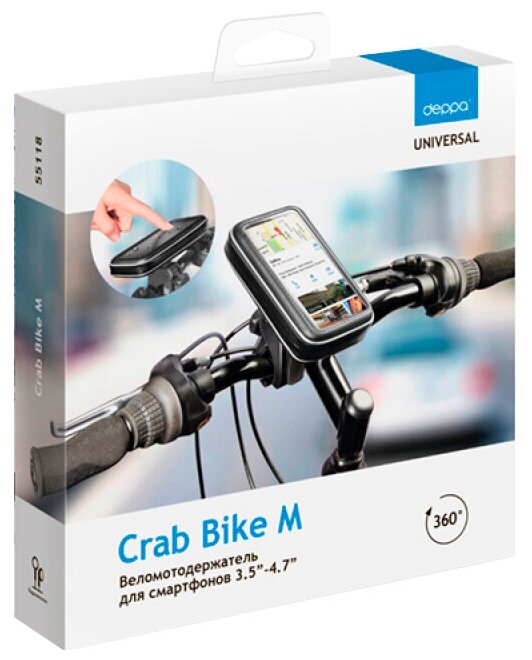 - Арт.: 55118. Веломотодержатель Deppa Crab Bike М для смартфонов 3.5"-4.3" 😇