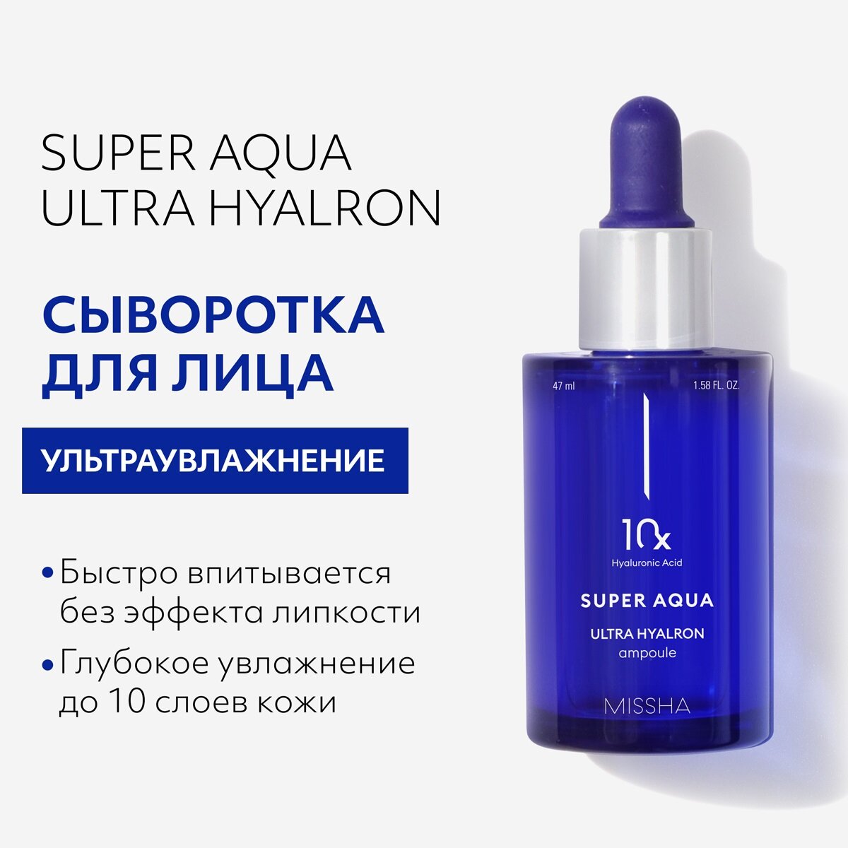 Сыворотка для увлажнения и гладкости лица Ultra Hyalron 47 мл Missha MSH-92872
