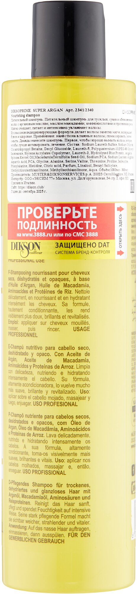 Питательный шампунь с маслами арганы и макадамии для сухих волос Shampoo Nourishing 300 мл Dikson (ЭХ99989439948)