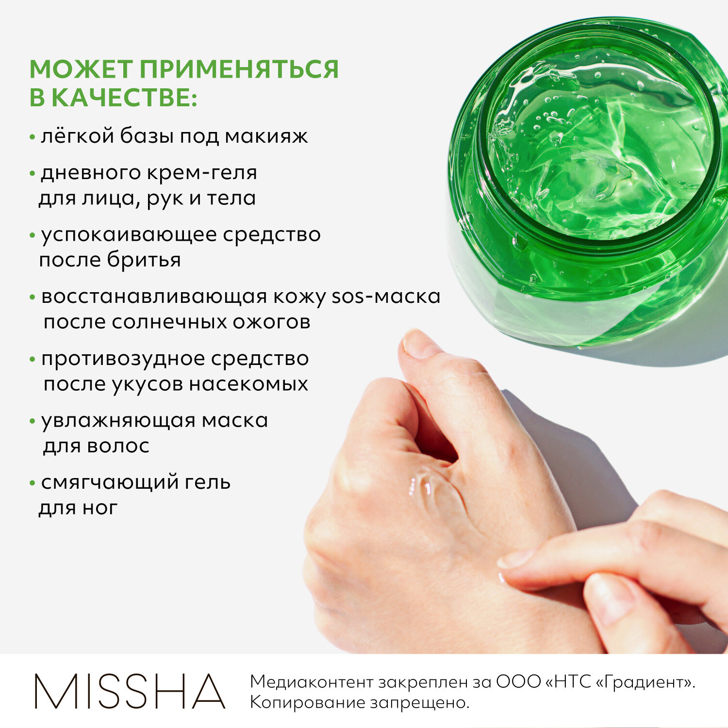 | Полное наименование | Гель с алоэ и центеллой азиатской Missha Premium Cica Aloe Soothing Gel |