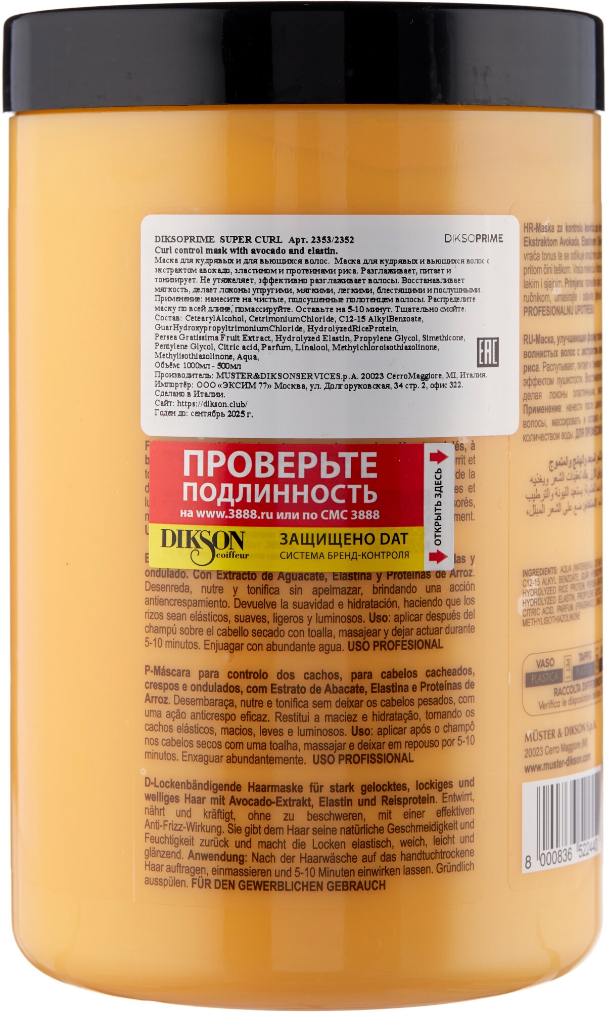 Маска с маслом авокадо для кудрявых и волнистых волос Curl Control Mask 1000 мл Dikson (ЭХ99989439981)