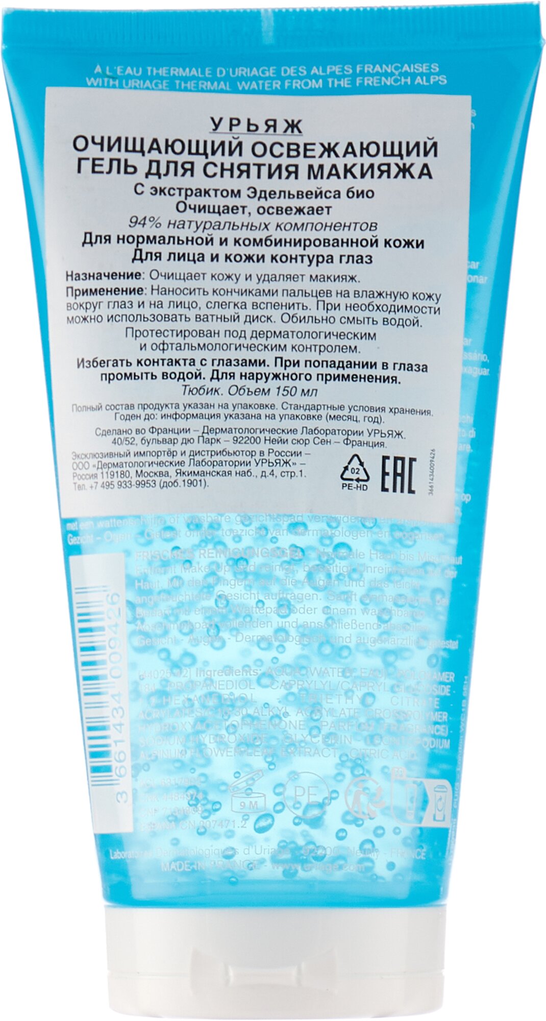 Очищающий освежающий гель для снятия макияжа 150 мл Uriage 438555