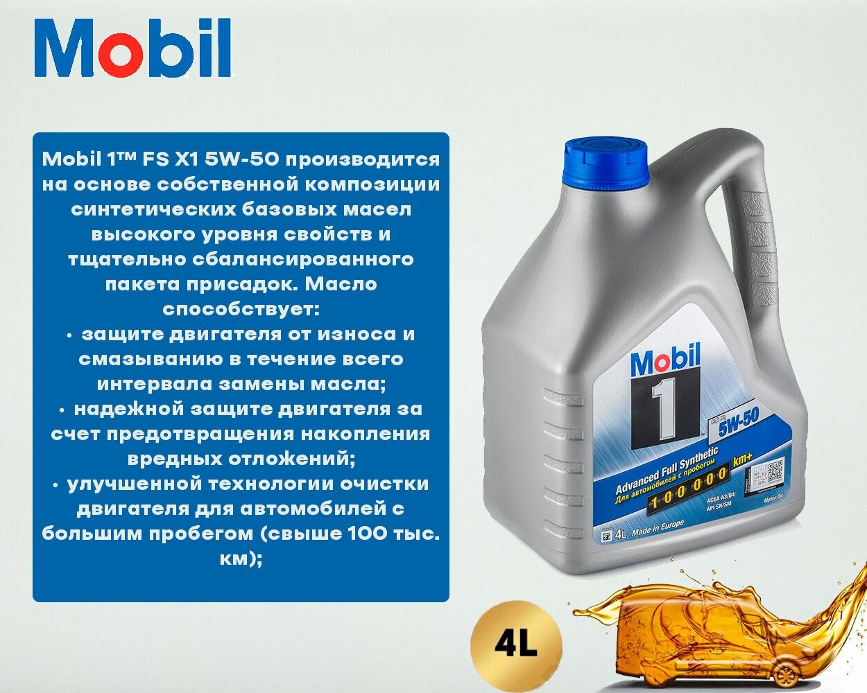 - Моторное масло Mobil 1™ FS X1 SAE 5W-50 API SN ACEA A3/B4 1L 153631 #ANTON_MYGT