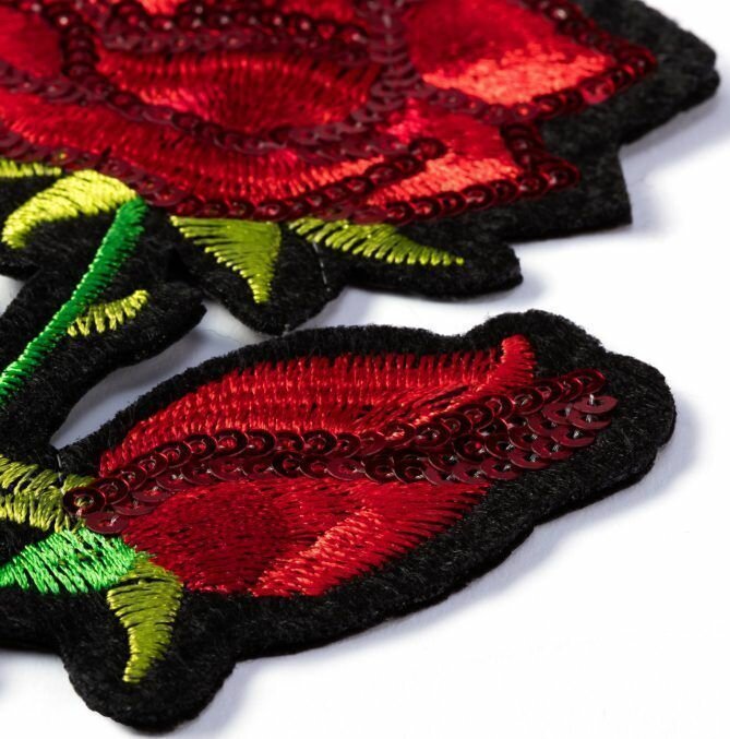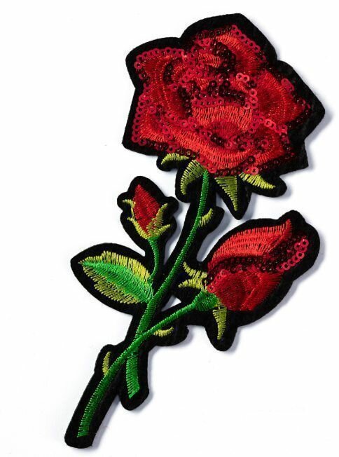 Термоаппликация 'Бутон розы' с пайетками подходит для маскировки поврежденных участков на вещах. Вещи с термоаппликациями выглядят ярко и необычно, не требуют при этом особого ухода.