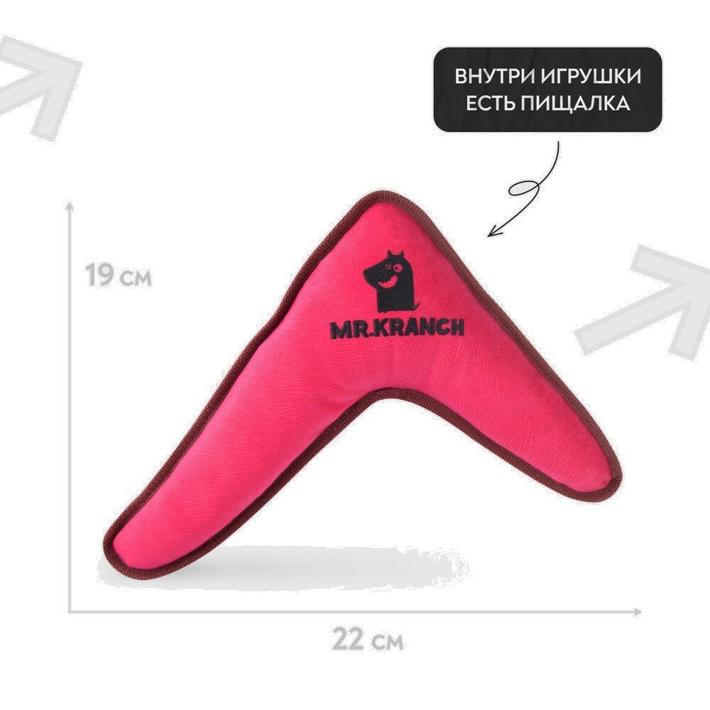 Mr.Kranch игрушка для собак бумеранг с пищалкой (22 х 19 х 45 см. Розовый)