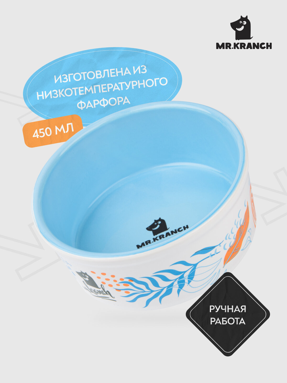 Коллекционные миски из фарфора Mr.Kranch - выполнены из особо прочного низкотемпературного фарфора с добавлением утяжеляющего полимера. Невероятно прочные и удобные в использовании: миски можно мыть в посудомоечной машине, подходят для использования в микроволновой и духовой печи. Дизайн разработан и перенесен в деколь художником по фарфору специально для бренда Mr.Kranch. Благодаря высокотемпературным обжигам миски не теряют цвет и рисунок. Подходят для кошек и собак мелких и средних пород. Объем - 450 мл Высота миски - 6 см Диаметр - 14 см