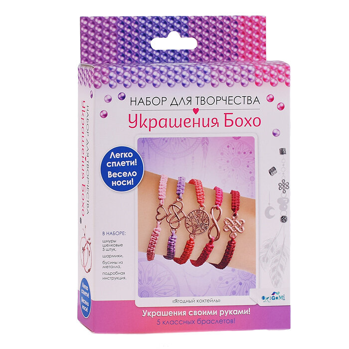 Набор для создания украшений Бохо. 5 браслетов. Ягодный коктейль ОРИГАМИ