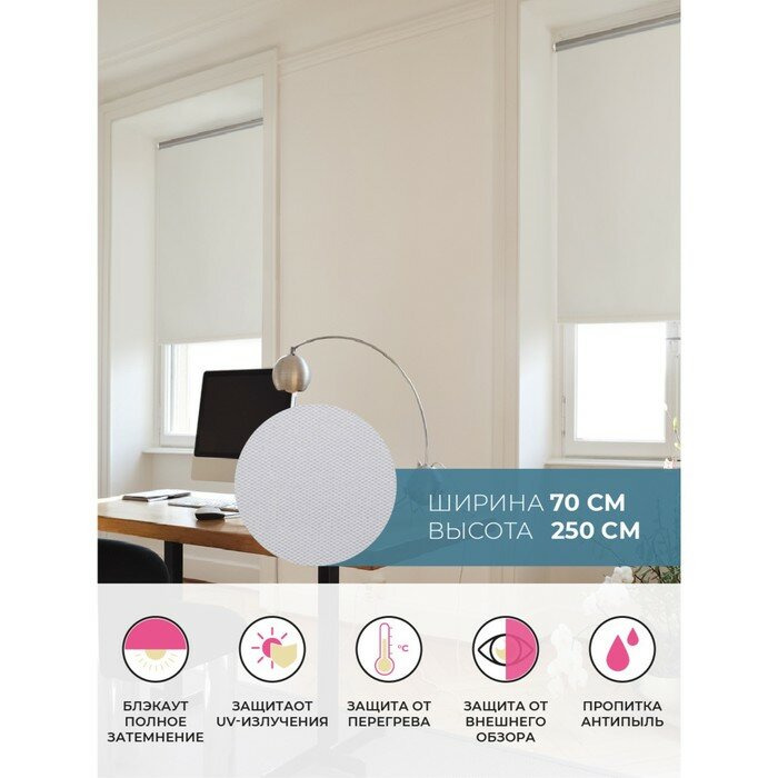 Рулонная штора DECOFEST BLACKOUT / БЛЭКАУТ Плайн Белый 90 x 250