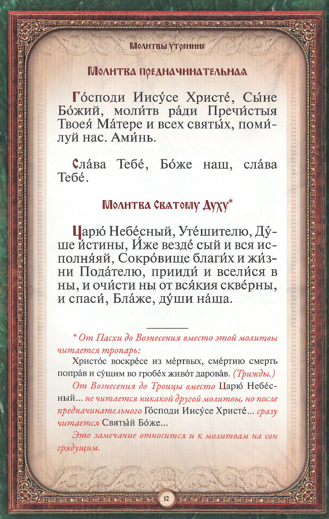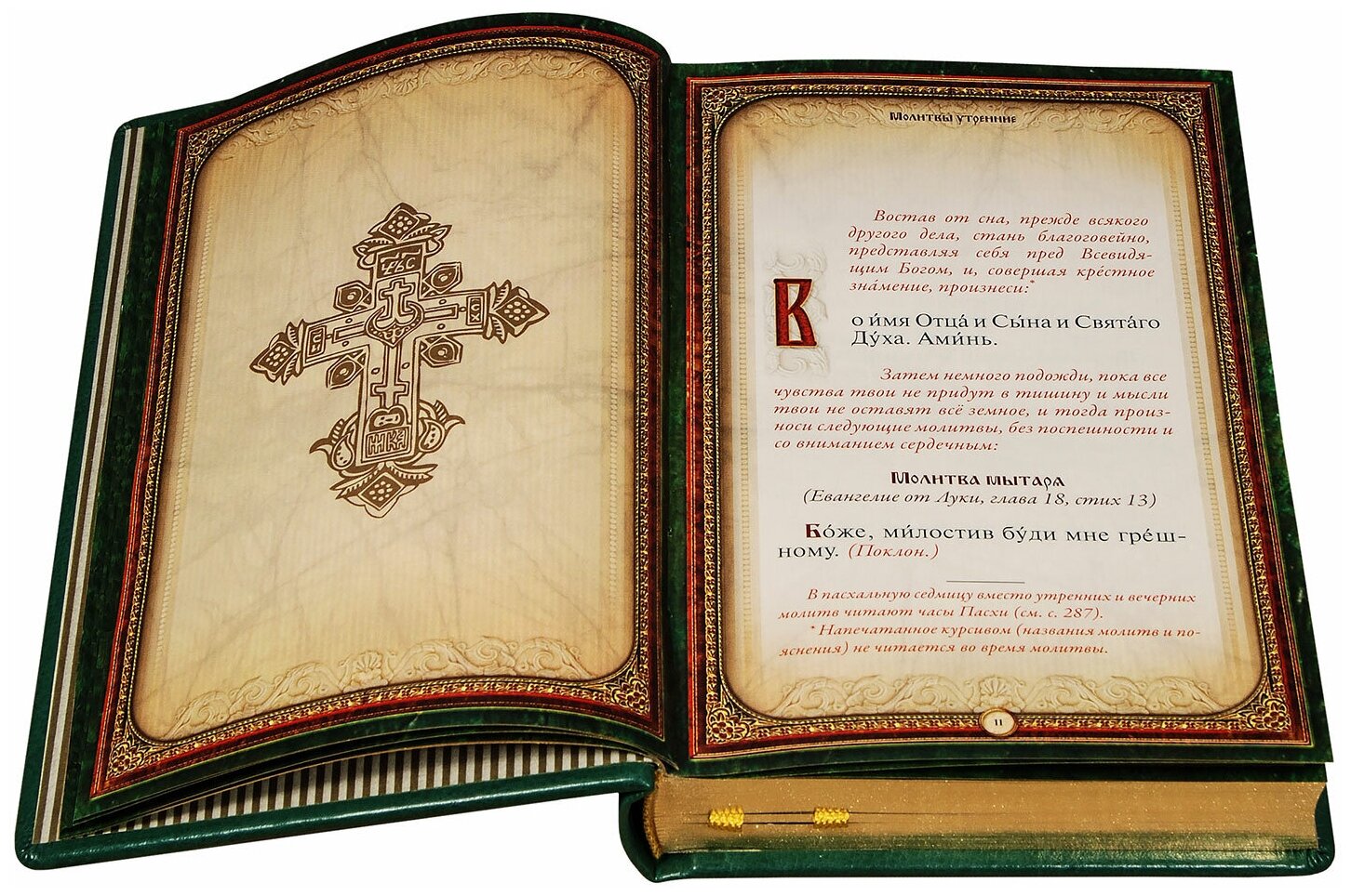 Подарочный молитвослов среднего формата, напечатанный гражданским шрифтом, в кожаном переплете с тиснением золотой и серебряной фольгой. Помимо традиционного состава молитв включает: тропари и кондаки на всю седмицу, тропари и кондаки праздников и воскресных дней, молитвы на разные случаи, молитвословия из панихиды. Каноны ко Святому Причащению совмещенные.