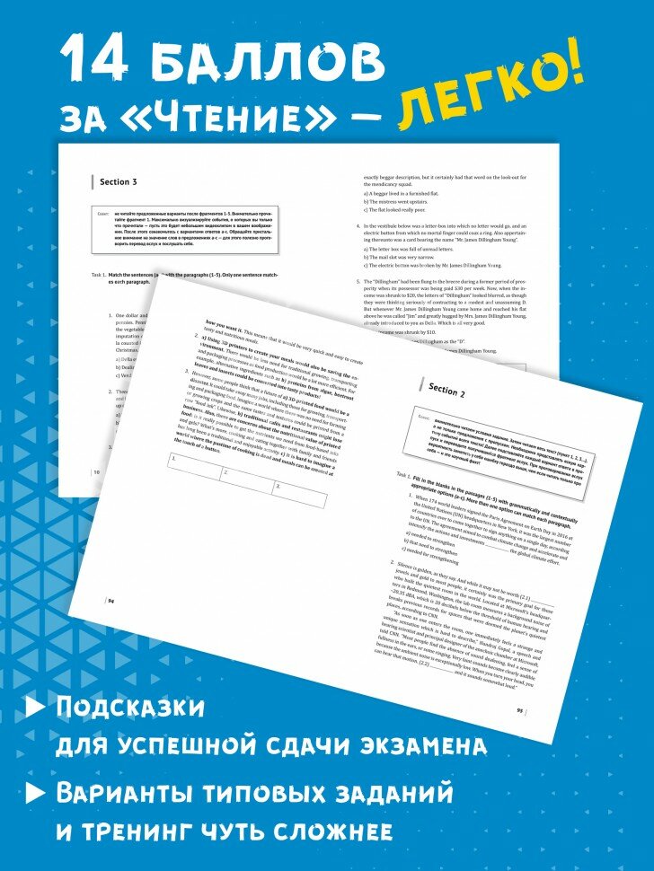 Автор с двадцатилетним опытом преподавания английского языка предлагает уникальные задания. Они не копируют задания ЕГЭ, как в большинстве пособий, и не заставляют повторять одно и то же. В качестве разминки даются задания, подобные вариантам ЕГЭ. За ними следуют разнообразные многоуровневые упражнения, намеренно составленные чуть сложнее тех, которые ожидают на экзамене. Справившись с такими заданиями, вы легко справитесь и с итоговым испытанием.