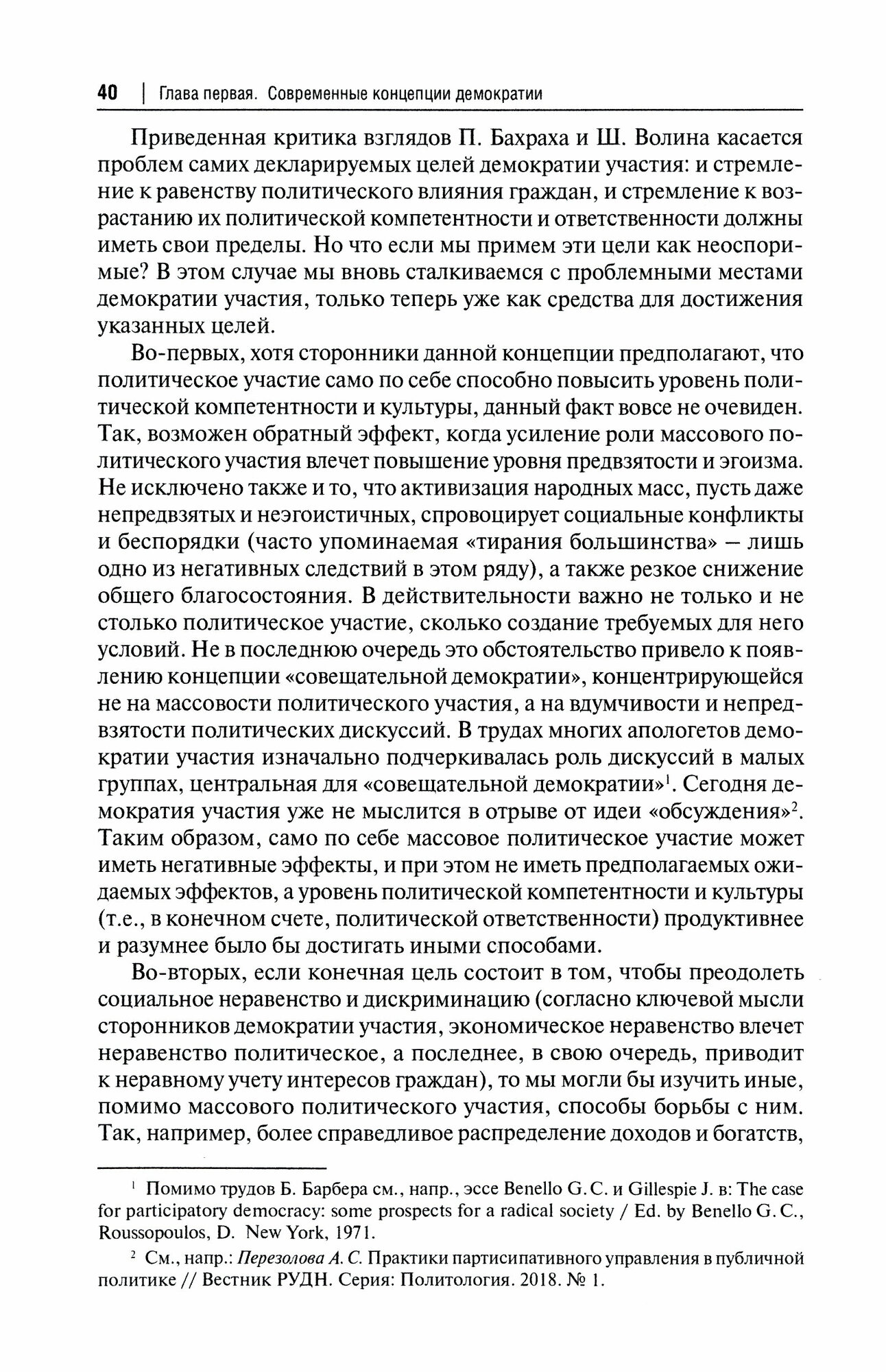 Монография посвящена основным нормативным вопросам, возникающим в современной теории демократии. Автор сравнивает демократический идеал правления с его недемократической альтернативой и приходит к выводу, что демократия далеко не всегда является наилучшей формой правления. Анализирует современные концепции демократии (элитистская, партисипаторная, совещательная и агонистическая) и утверждает, что ни одна из них не может служить базовой нормативной моделью для демократической формы правления. Рассматривает основные институты и механизмы демократии и отстаивает тезис, что институты прямой демократии при всей их амбивалентности содержат в себе нераскрытый потенциал, но институт выборов на сегодняшний день вряд ли может считаться основным и тем более непременным атрибутом демократического правления.