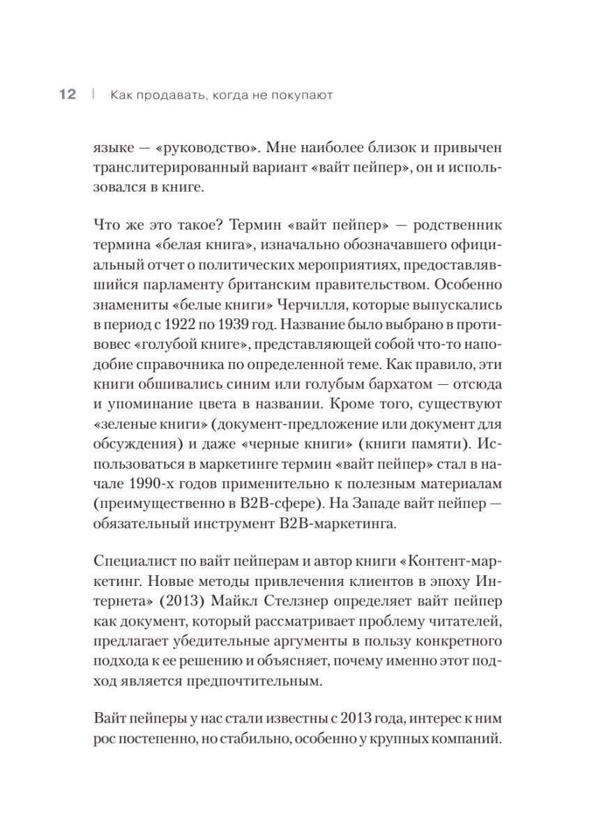 Эта книга о том, как с помощью всего трех маркетинговых инструментов – вайт пейпер (white paper), авторассылки и кейсов – можно построить маркетинг для своей компании в сфере B2B и для продуктов, которые не имеют сформированного спроса.