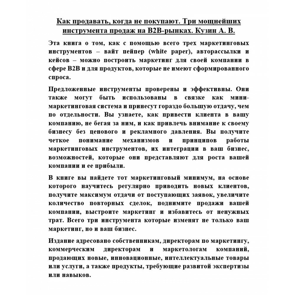 Как продавать когда не покупают. Три мощнейших инструмента продаж на B2B-рынках (Александр Кузин); Питер (Айлиб), 2023