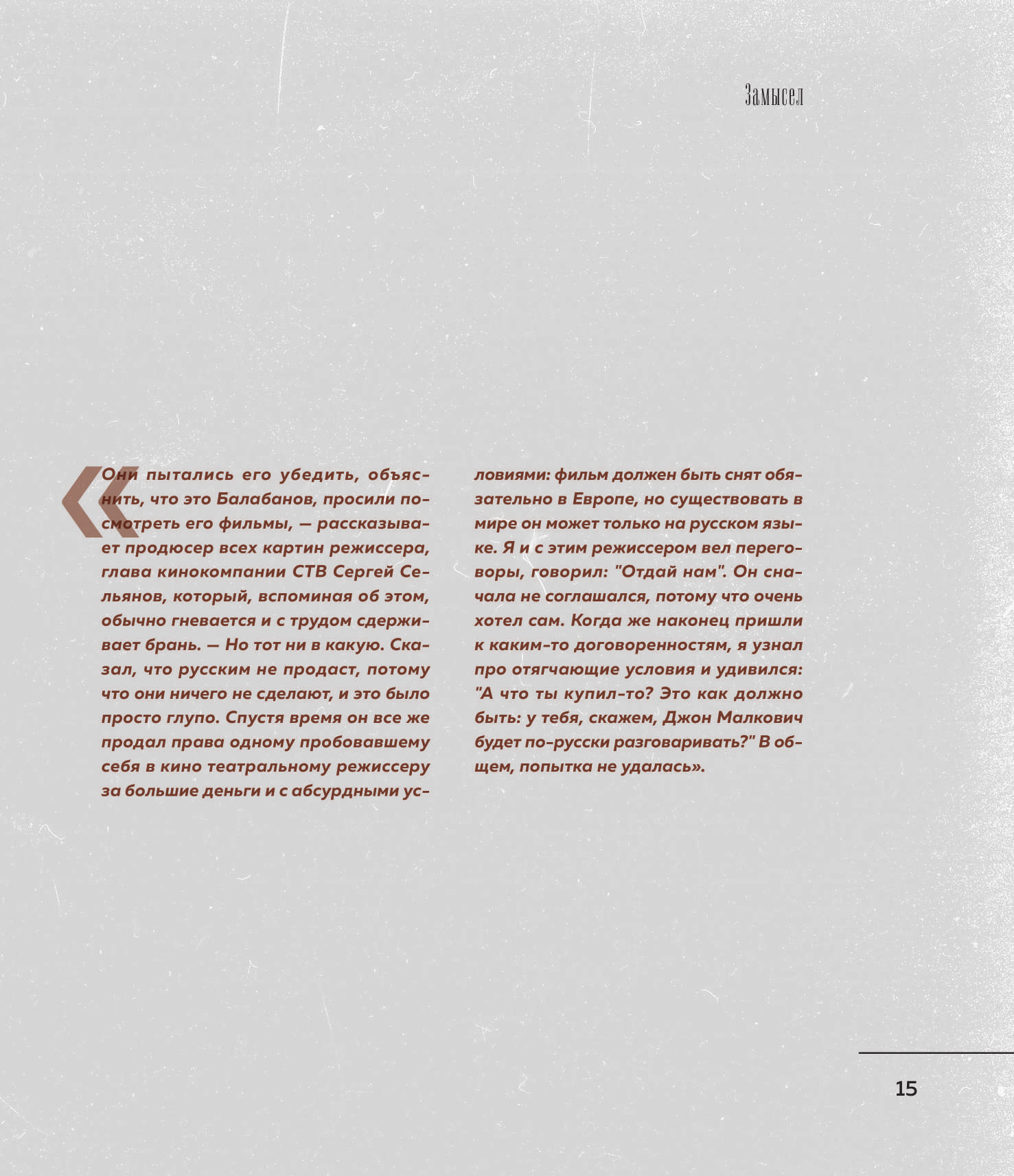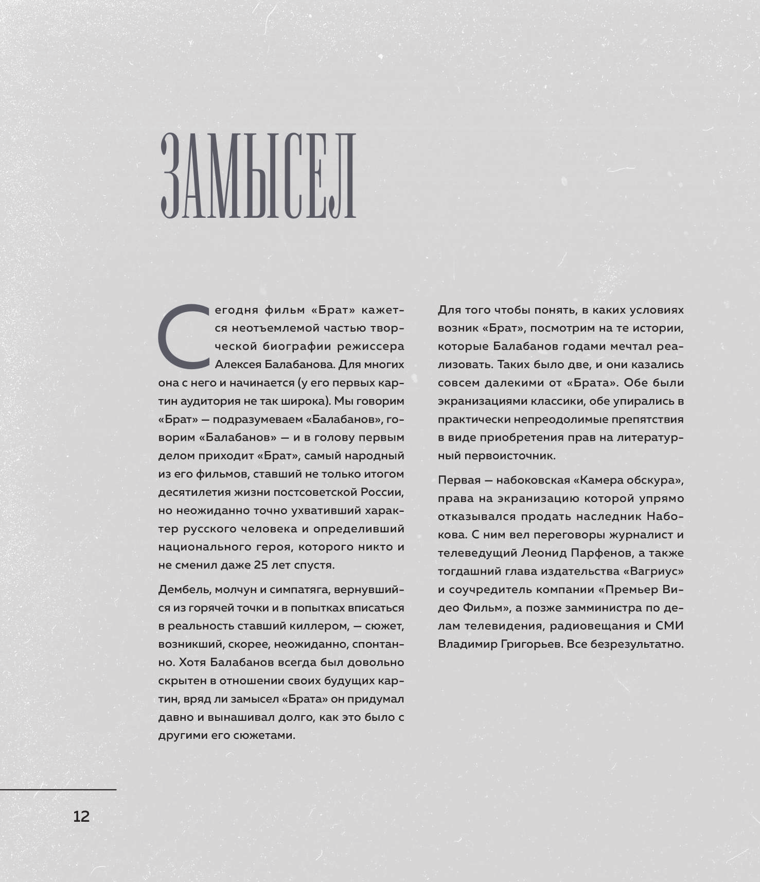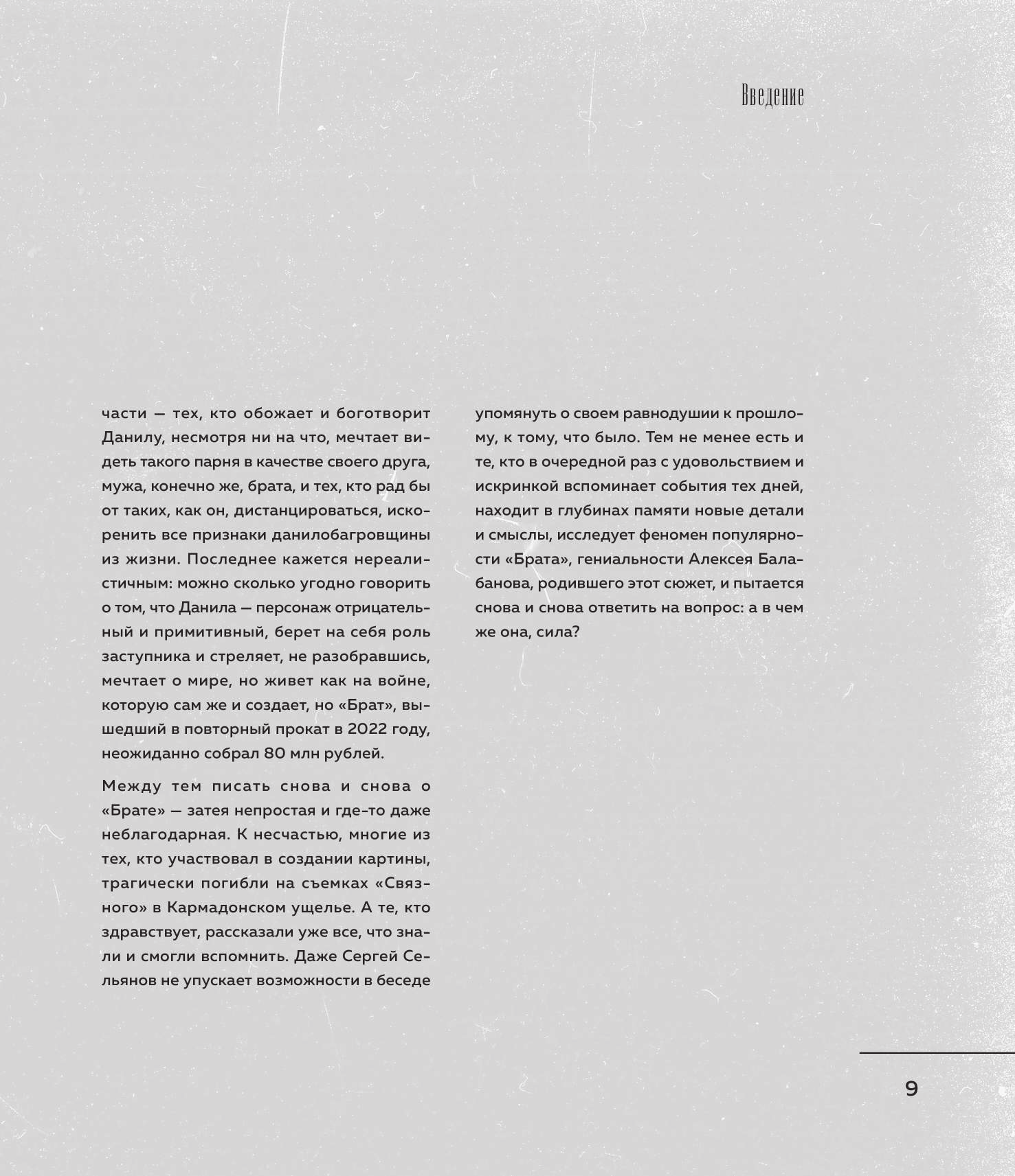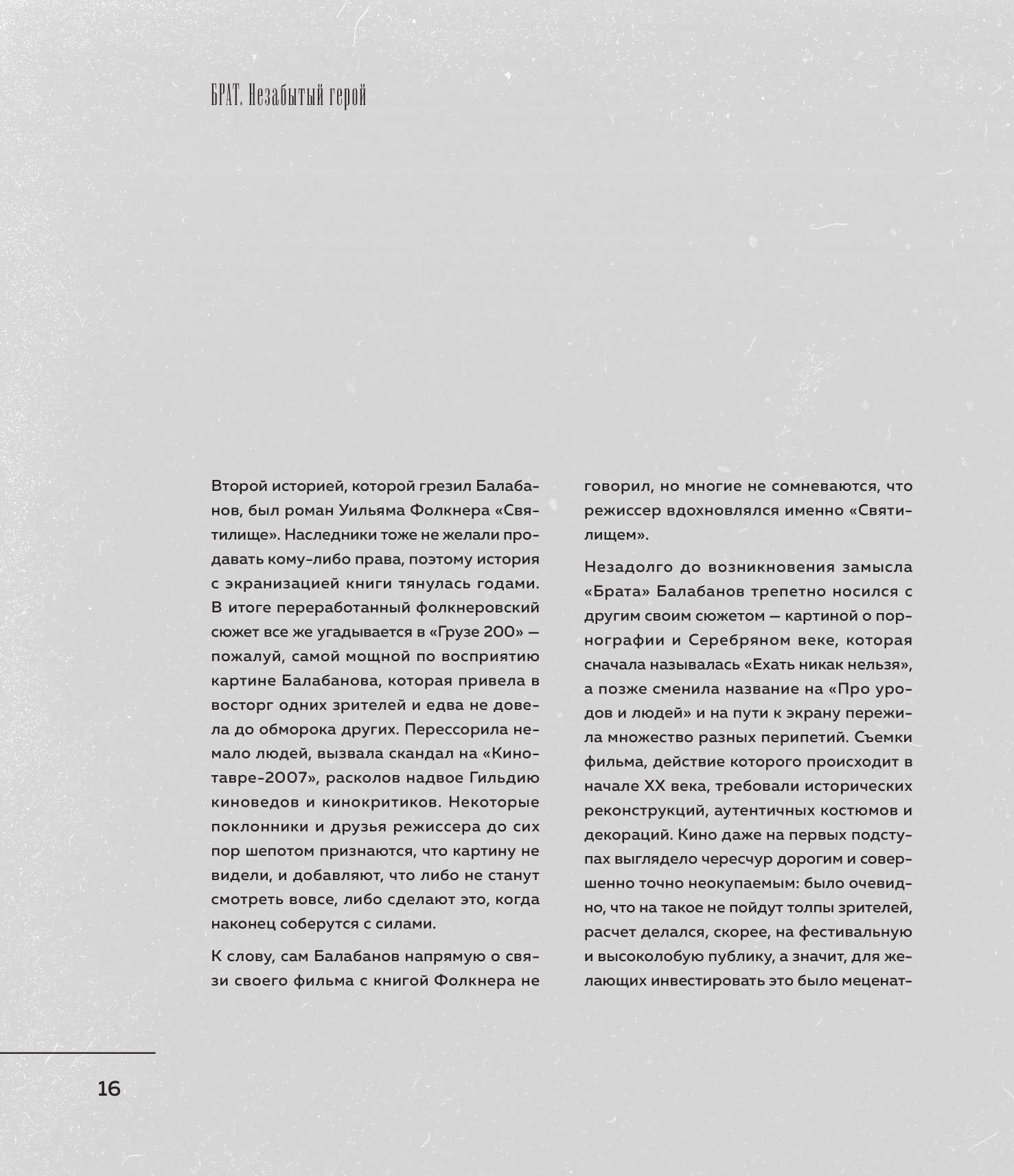 Полистала книгу, как только её купила. И взгляд упал на фотографию, которая находится на страницах 234-235. Иии перед тем как печатать никто не заметил нить? на фотографии?? Второй момент на странице 253 - \"20 ноября 2020г. ... в машине сидел Балабанов...\" при том что умер режиссер в 2013г. Вроде и мелочи, мои придирки, но не за 3 же тыс. (текста не особо много, но есть и неизвестные мне доселе)