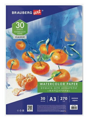 Бумага для акварели Мандарины А3 30 листов Brauberg 114402