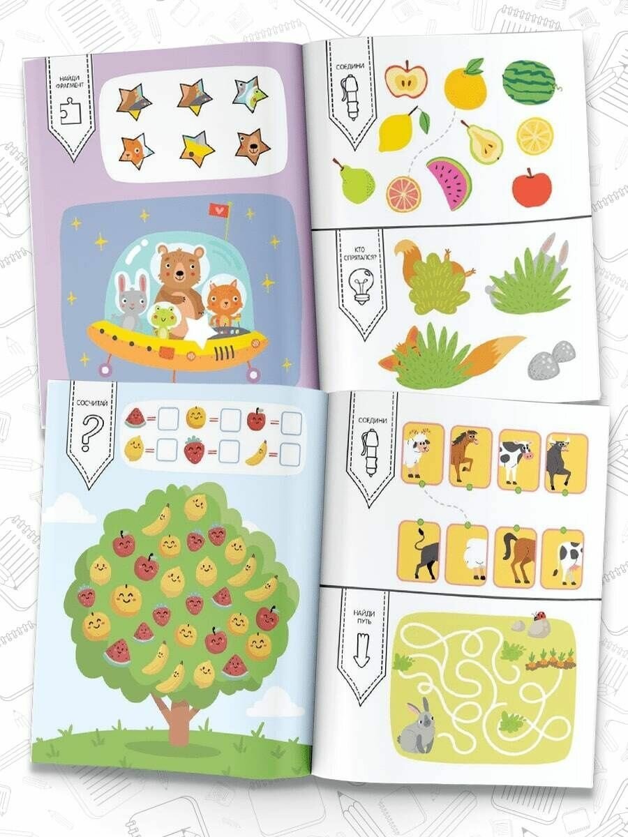 Подойдёт для детей постарше, не совсем малышей(чисто моё мнение). Покупала для младшей сестрёнке, ей очень понравилась книжка.Очень хорошая книжка для развития детей. Здесь есть задания где нужно подумать. Так же здесь имеются задания на логику и внимательность. Развивает речь и обогощают кругозор ребёнка. Восновном здесь знания с картинками, что-то соединить или найти путь. Но также есть задание, где нужно посчитать предметы и записать сколько их изображено на картинке.