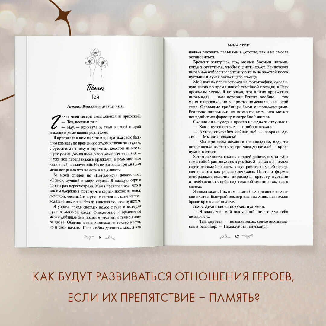Даже самые нечувствительные люди прослезятся над этой историей, она задевает по самую душу. Мне совершенно не близка тема амнезии, но сердце обливалось кровью от метаний главной героини. Её отчаяние и её боль было чувствовать невероятно тяжело. Главный герой тоже трогает своей личностью, заставляя переживать и его потери. Очень стекольный роман, который достоин вашего внимания.