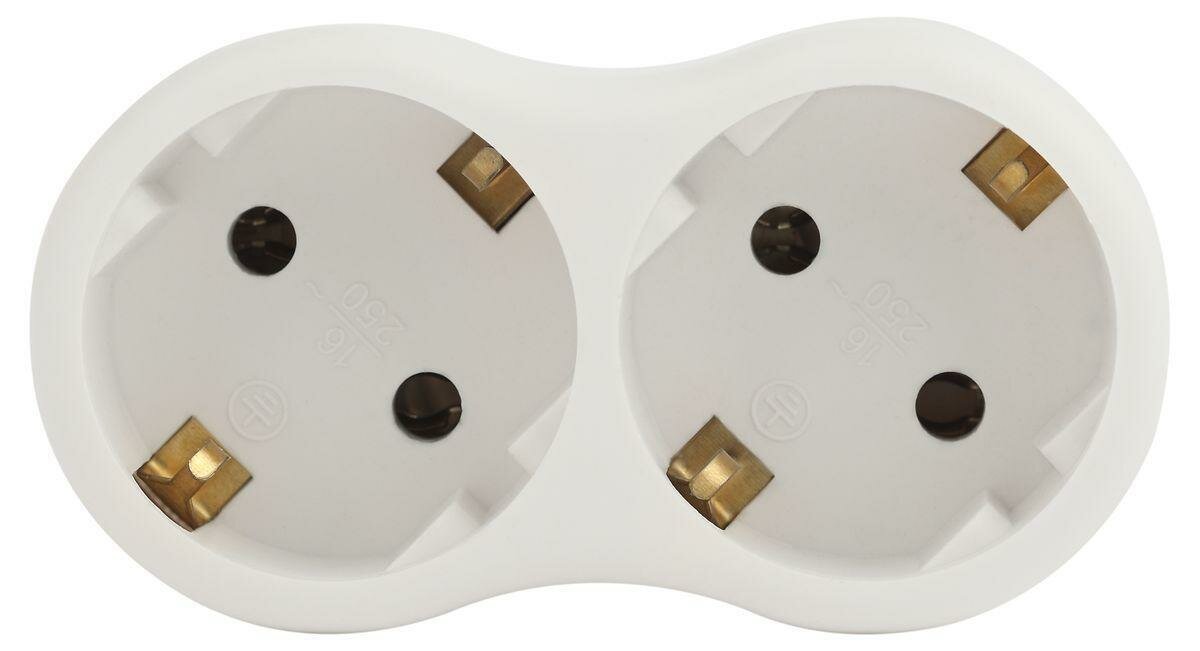 разветвитель ЭРА 2 гнезда с/з белый 16А SPx-2e-W