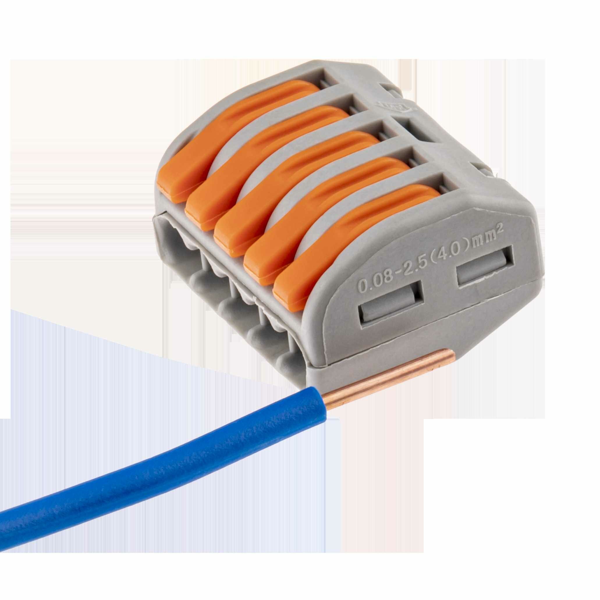 Предназначены для соединения одножильных и многожильных медных проводов, защищая их от повреждения и исключая возможность замыкания. Рычажки предназначены для надежного зажима кабелей. Используется в цепях переменного и постоянного тока до 400 В.