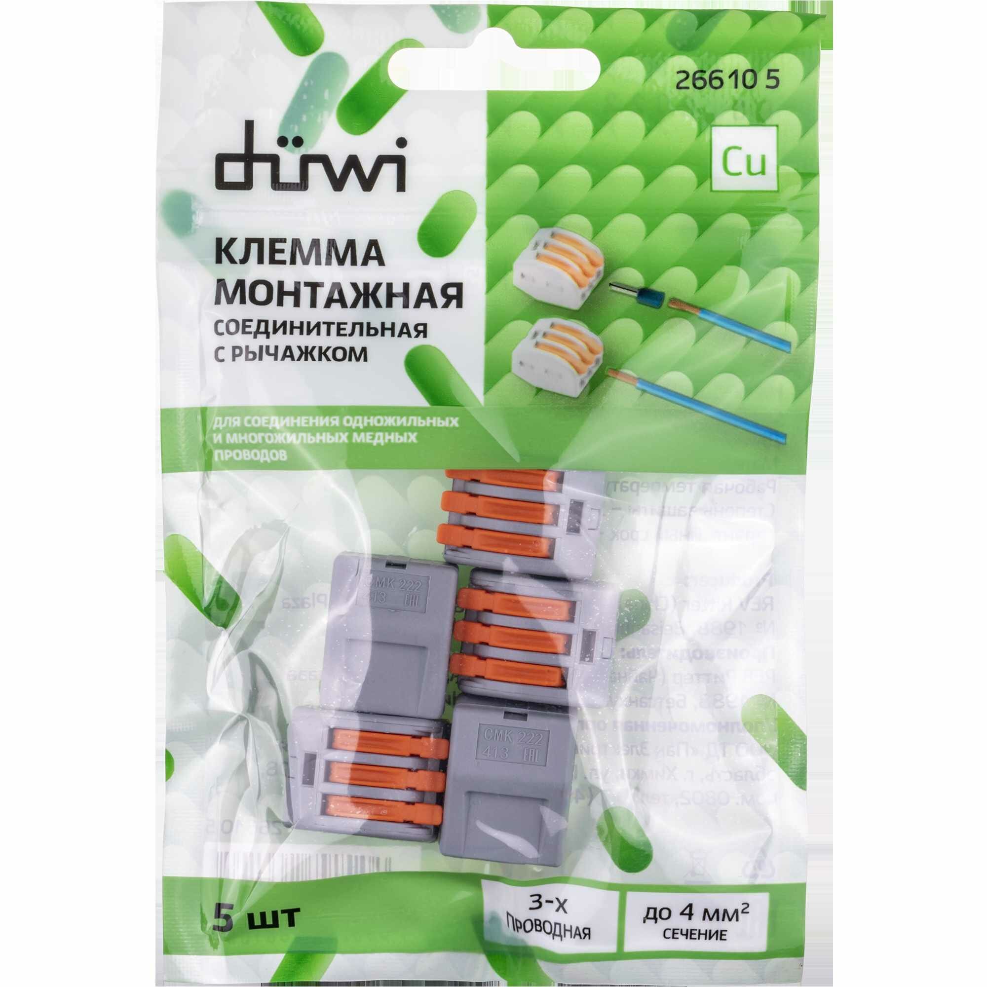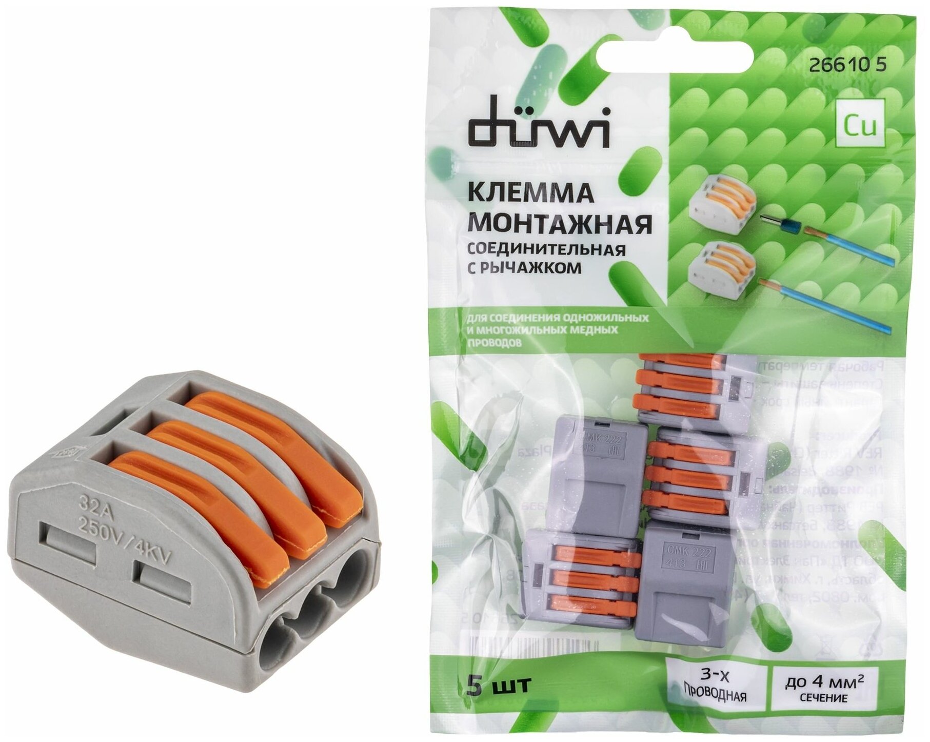 клемма соединительная DUWI 3-проводные 4 кв.мм СМК 222-413 5шт серый 26610 5
