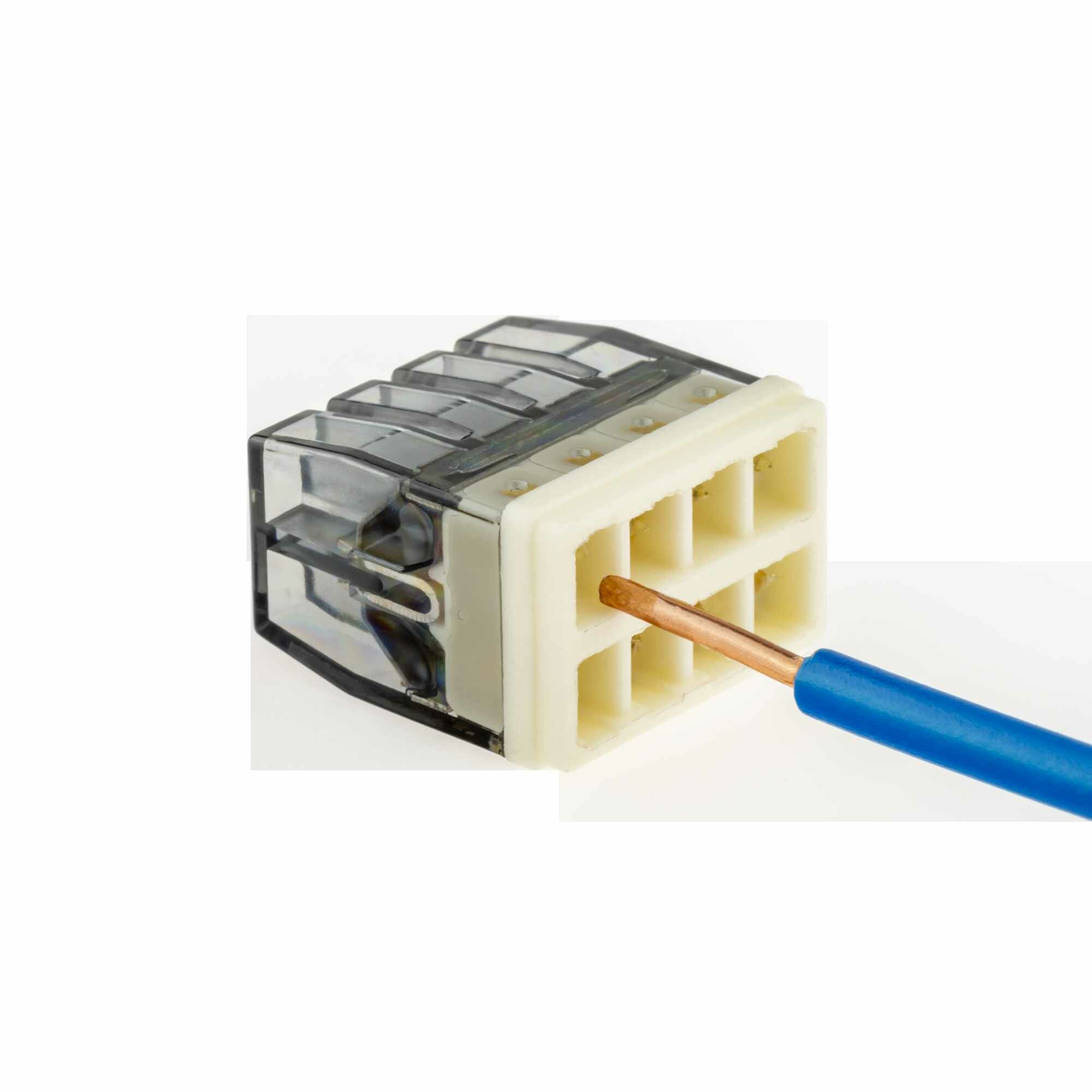 клемма соединительная DUWI самозажимная с пастой 8-проводная 25 кв.мм СМК 772-208 5шт прозрачный (26733 1)