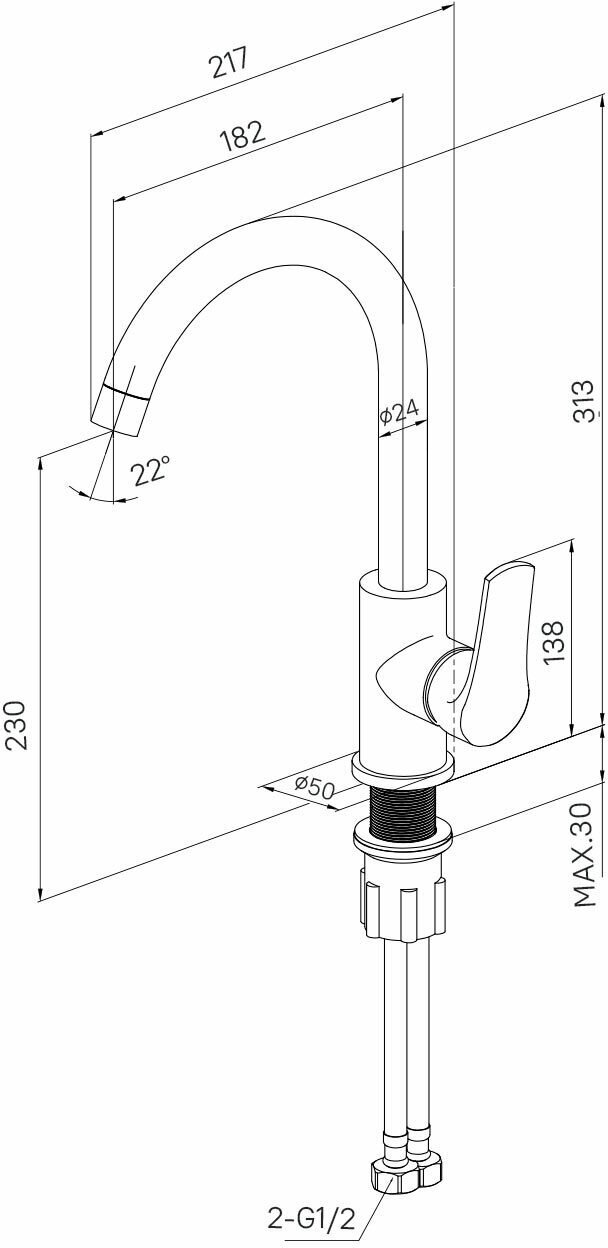 | Длина (вылет) излива | 21.7см |