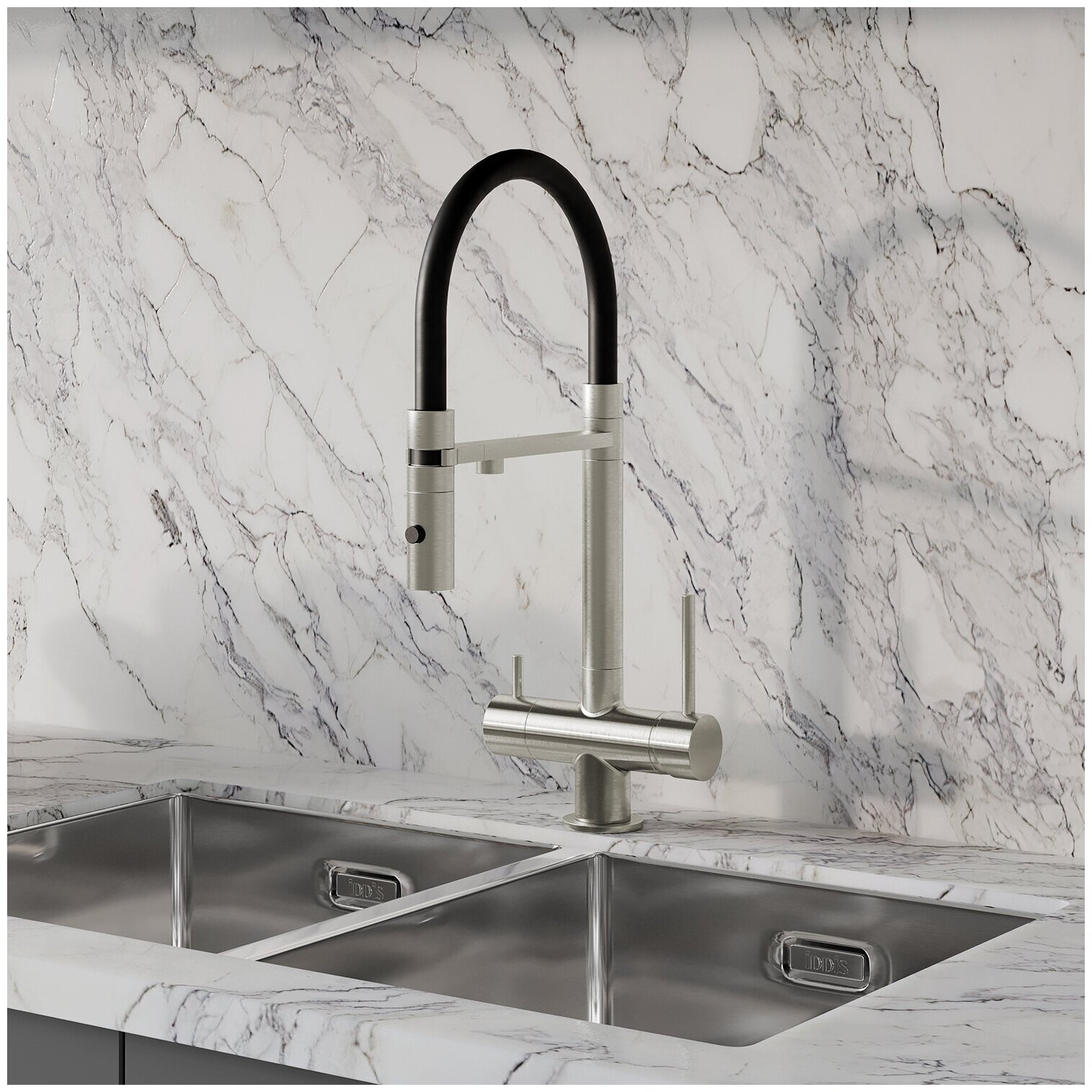 Смеситель для кухни с фильтром и гибким изливом сатин от IDDIS - это стильное и функциональное решение для любой кухни. Благодаря своей глубине в 11 сантиметров, он обеспечивает комфортное использование в течение долгого времени.