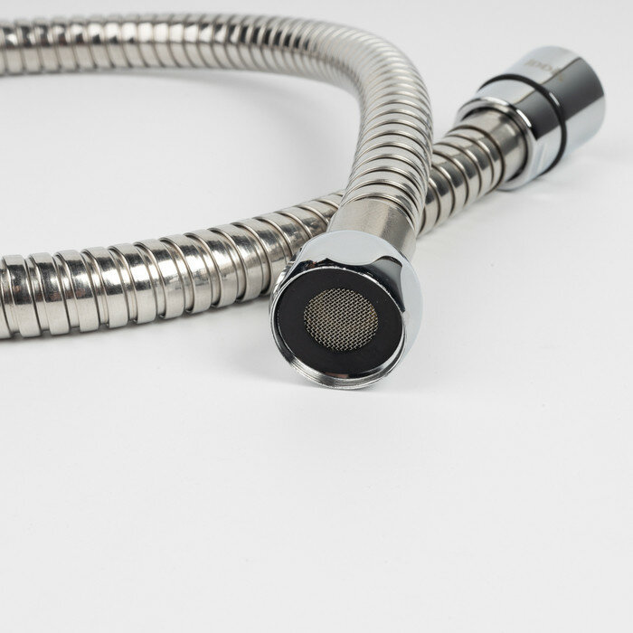 Специальное шарнирное соединение защищает шланг от перекручивания и обеспечивает комфортное использование. Шланг в оплетке из нержавеющей стали отличается повышенной надежностью, прочностью на растяжение и скручивание. Эластичный внутренний шланг из современного полимерного материала выдерживает растяжение и температурные перепады, не имеет склонности к пересыханию и растрескиванию.