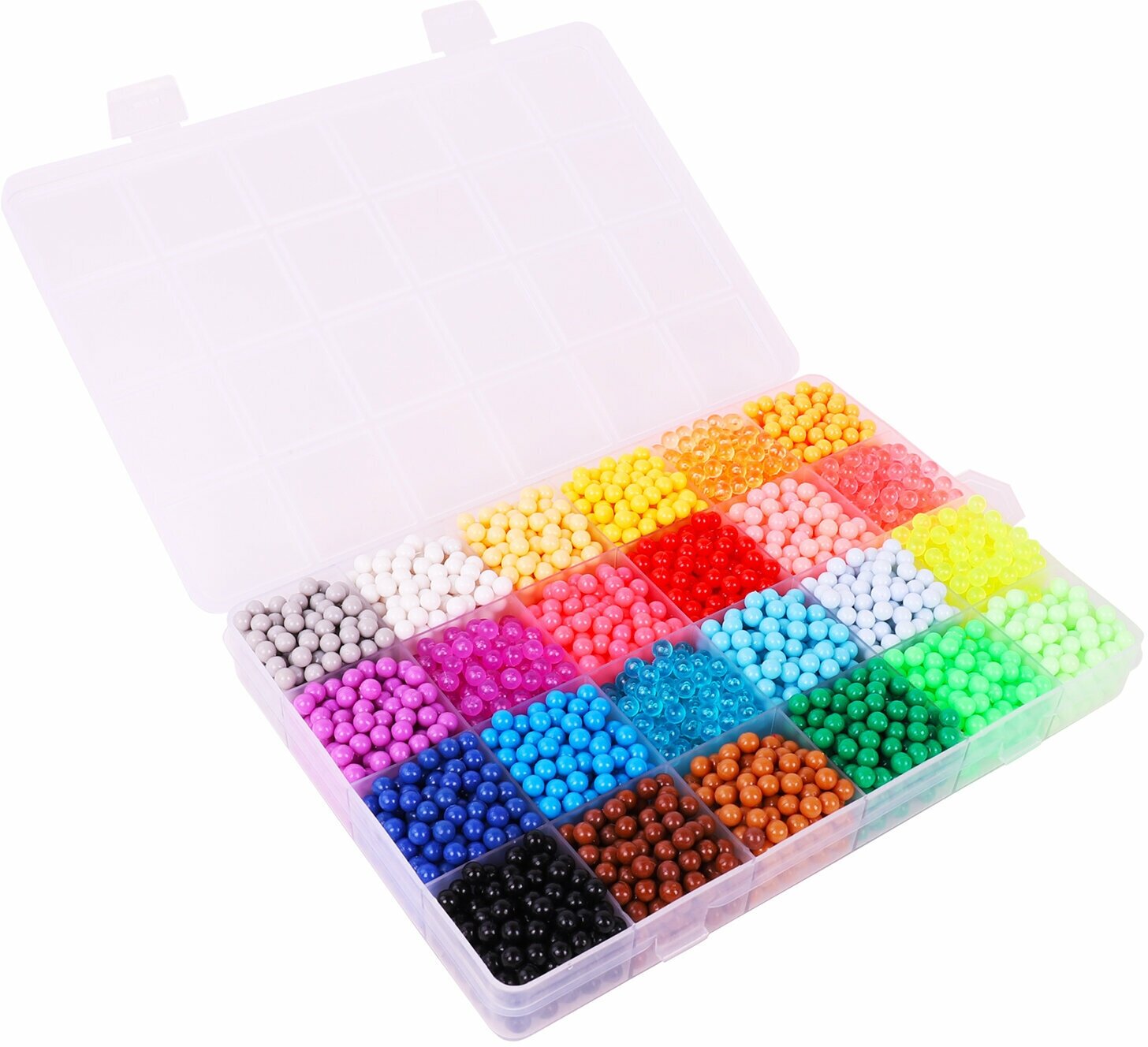 Как играть: 1. Выберите понравившийся рисунок и поместите карточку с ним под прозрачную подставку-трафарет. 2. Набирайте бусины нужных цветов в специальную ручку и выкладывайте их на трафарет, нажав на кнопку внизу ручки. Обратная сторона ручки оснащена специальной ложечкой, которая позволяет набирать по несколько бусин сразу! 3. Продолжайте выкладывать бусины различных цветов по трафарету, пока не закончите рисунок. 4. Наберите в бутылочку обычной воды и побрызгайте на фигурку водой. 5. Подождите 20-60 минут (в зависимости от количества воды, сложности фигурки). 6. Снимите готовую игрушку с подставки специальной лопаткой! Получившаяся игрушка достаточно крепкая, в неё можно играть или подарить друзьям.