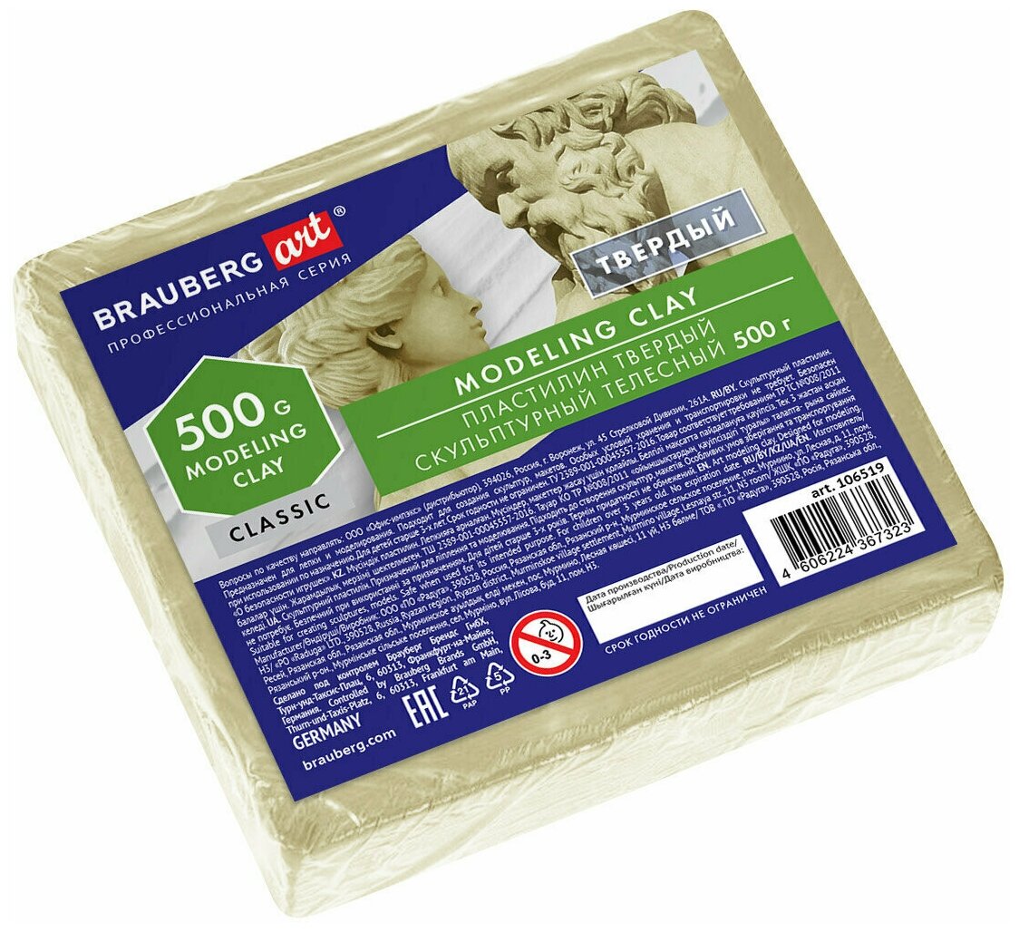 Скульптурный пластилин BRAUBERG ART CLASSIC телесного цвета предназначен для моделирования и создания скульптур, макетов, поделок. Идеально подходит не только для студентов, но и для всех, кто хочет научиться моделированию.