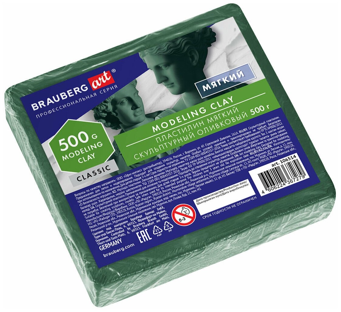 Пластилин скульптурный оливковый 05 кг мягкий Brauberg