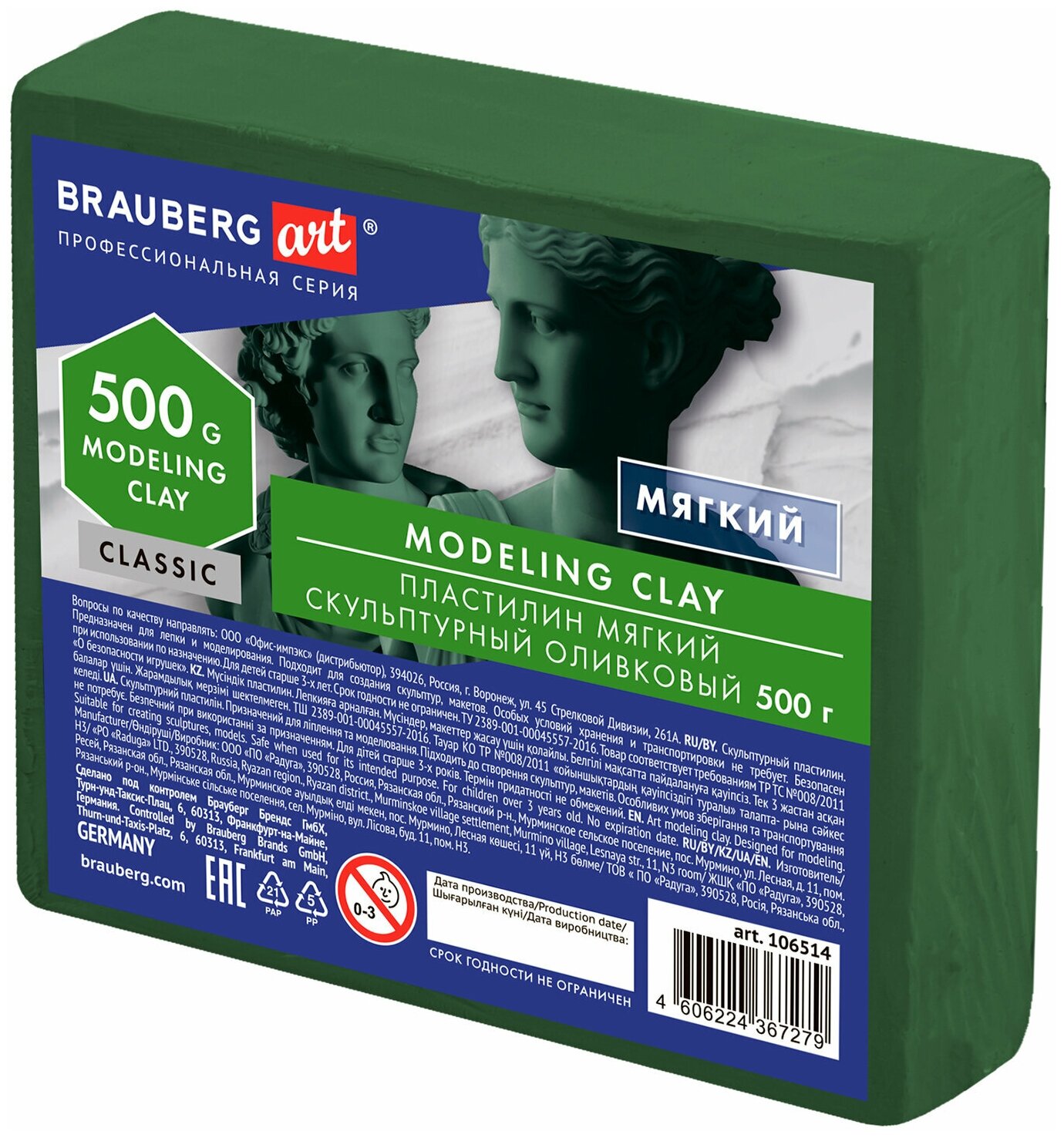 Скульптурный пластилин BRAUBERG ART CLASSIC оливкового цвета предназначен для моделирования и создания скульптур, макетов, поделок. Идеально подходит не только для студентов, но и для всех, кто хочет научиться моделированию.