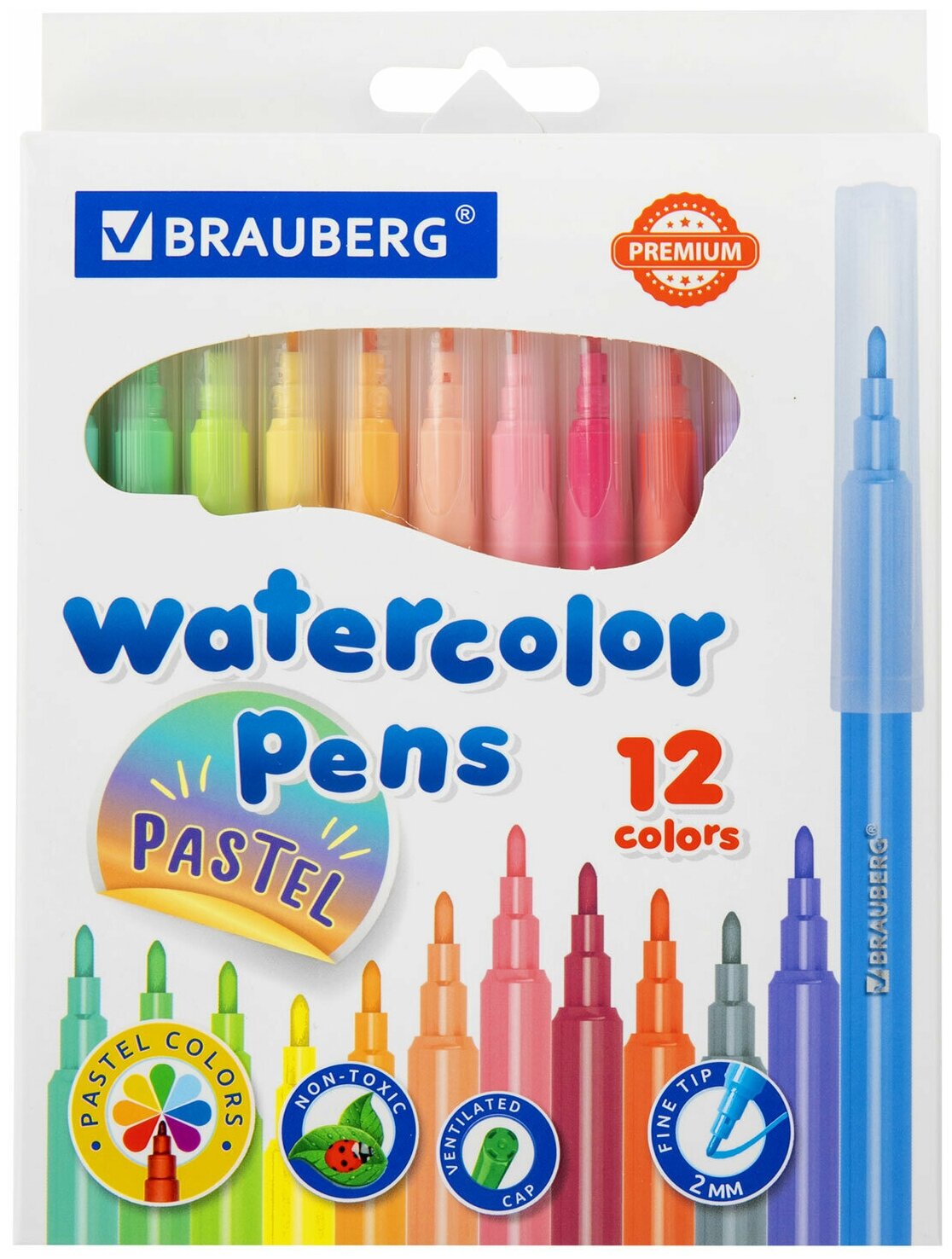 Фломастеры Premium 12 цветов пастельные Brauberg