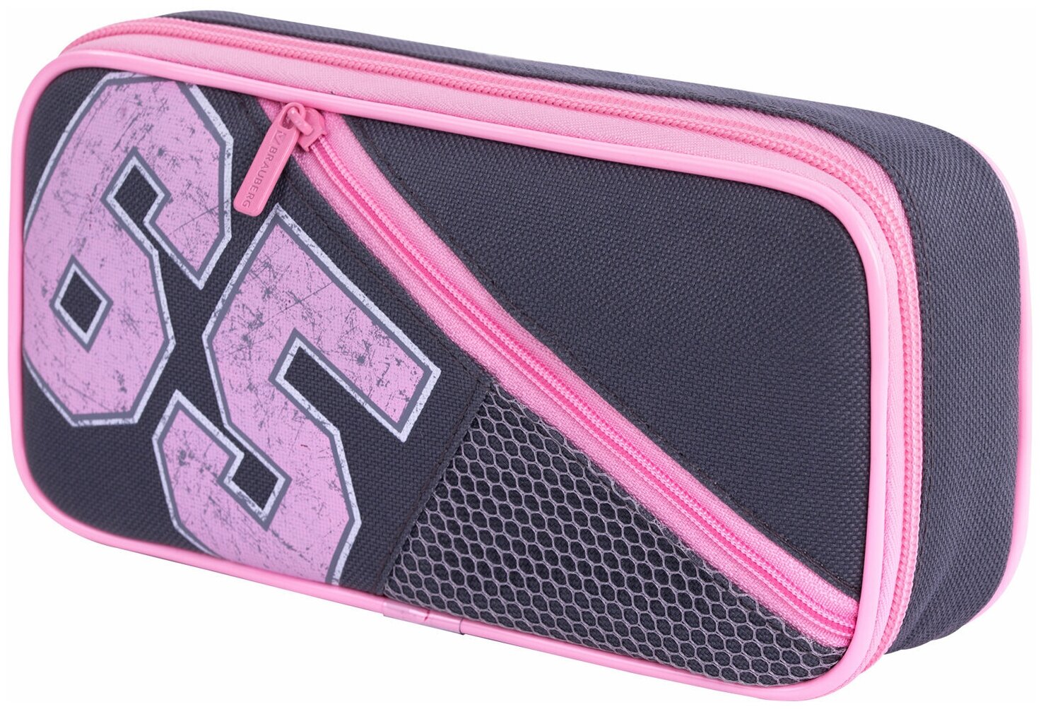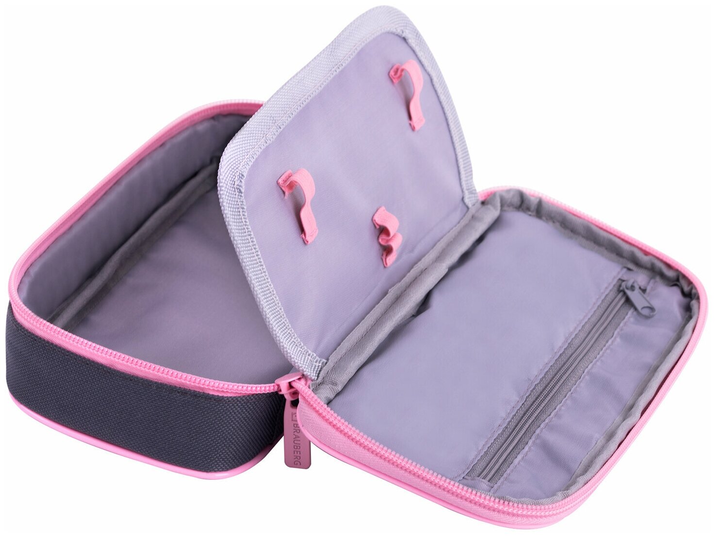 Пенал-косметичка 1 отделение 2 кармана серо-розовый Brauberg
