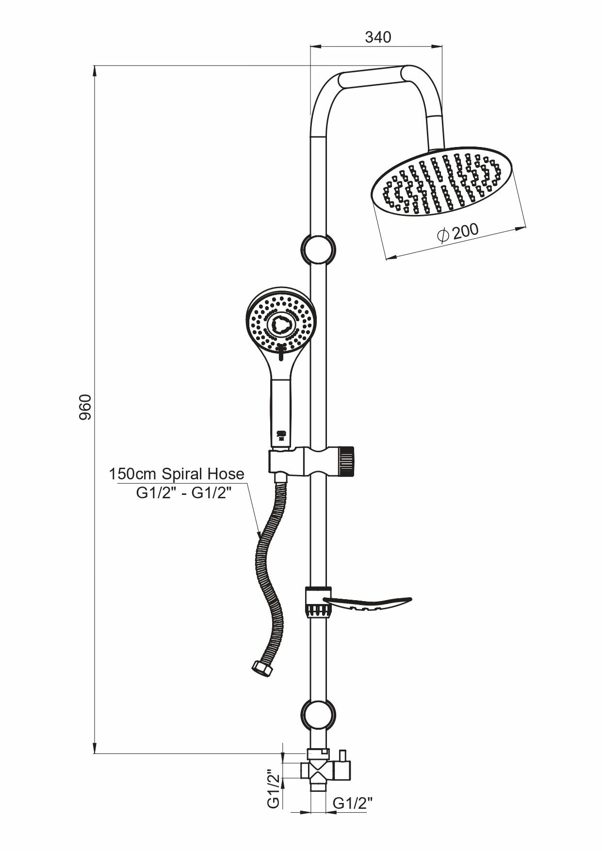 - Диаметр верхнего душа: 200 мм.