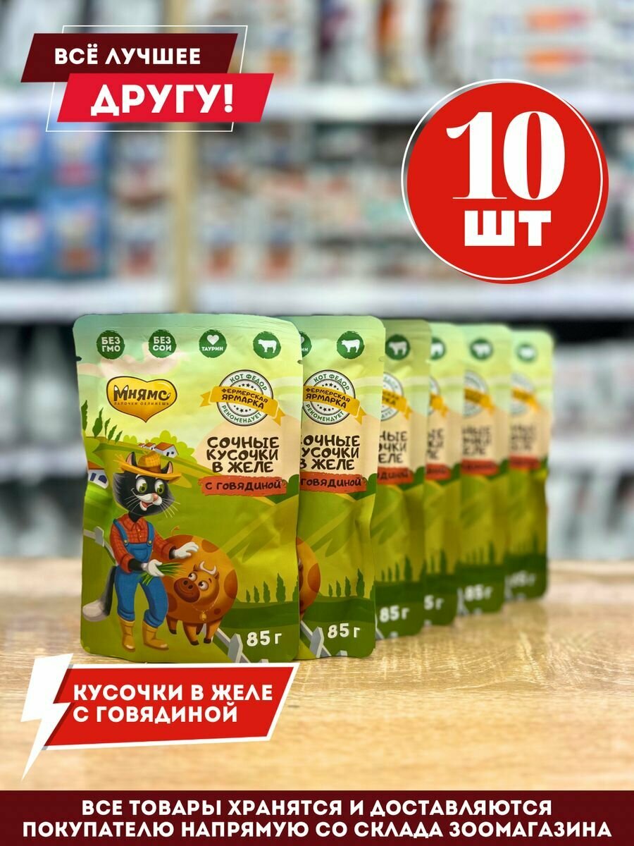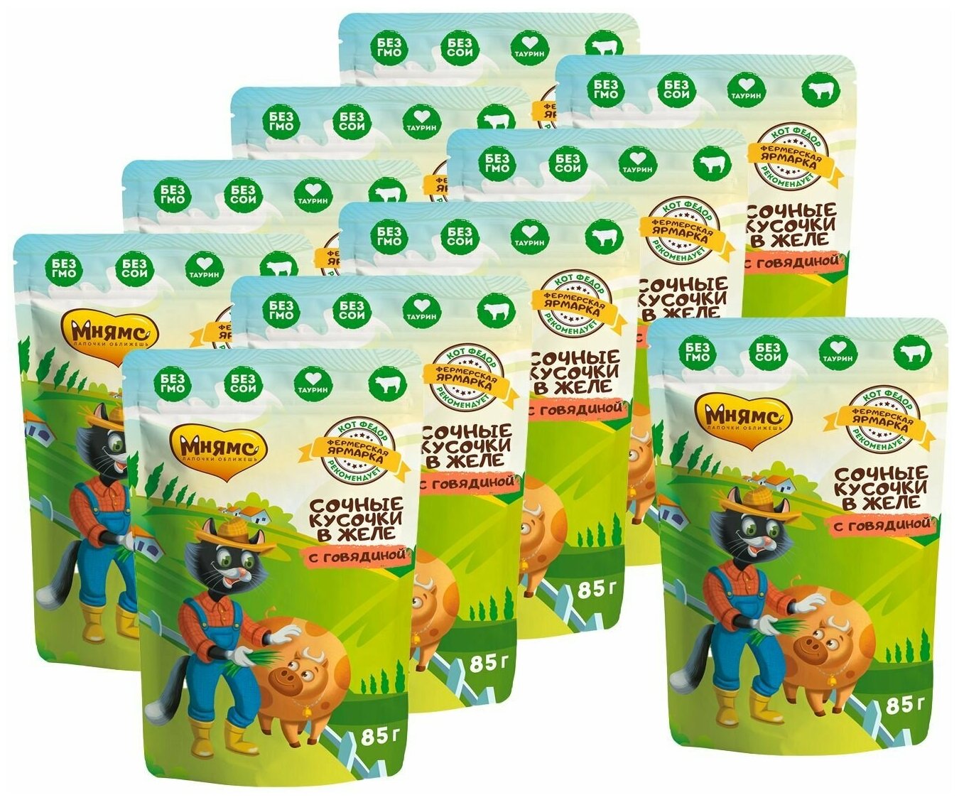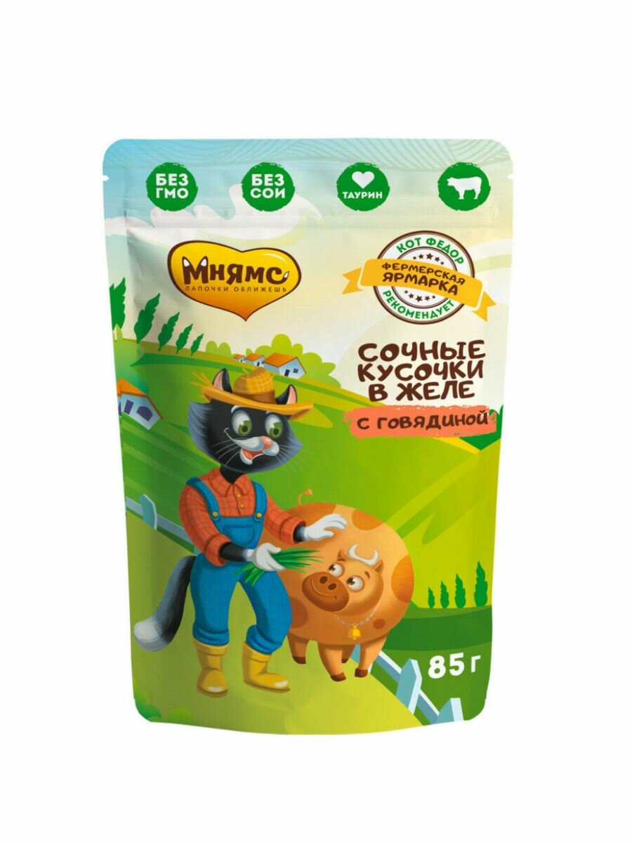 Мнямс "Фермерская ярмарка" пауч для кошек (сочные кусочки в желе) (Говядина 85 г.)