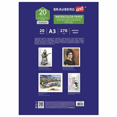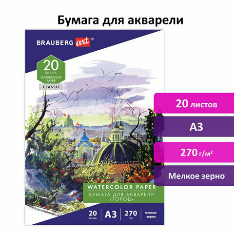 Бумага для акварели BRAUBERG ART «CLASSIC» содержит набор листов, специально предназначенных для рисования всеми видами водорастворимых красок.