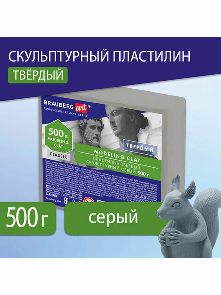 Скульптурный пластилин BRAUBERG ART CLASSIC серого цвета предназначен для моделирования и создания скульптур, макетов, поделок. Идеально подходит не только для студентов, но и для всех, кто хочет научиться моделированию.