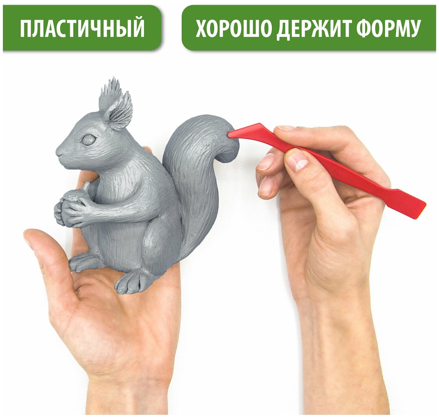 — после того как пластилину придали форму какой-то фигуры, он не застывает, не крошится, эластичность не пропадает.