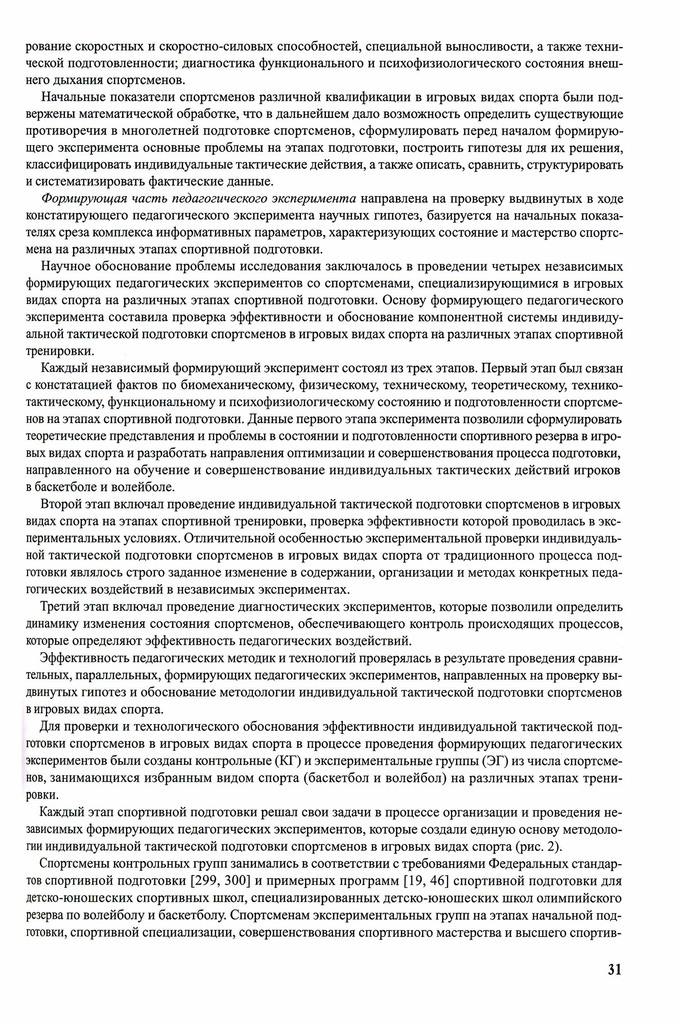 В монографии рассматриваются теоретические вопросы индивидуальной тактической подготовки спортсменов различной квалификации, специализирующихся в баскетболе и волейболе. Методология и методика позволяют описать всю процедуру исследования индивидуальной тактической подготовки спортсменов в игровых видах спорта. Исследование раскрывает технологию идентификации и классификацию индивидуальных тактических действий в спортивных играх. Периодизация индивидуальной тактической подготовки спортсменов в игровых видах спорта позволяет доказать возрастные аспекты эффективного формирования конкретного компонента системы, обеспечивающего повышения спортивного мастерства игроков в баскетболе и волейболе. Теоретически и экспериментально обоснованная технология индивидуальной подготовки спортсменов в игровых видах спорта выступает в виде самостоятельного направления многолетней тренировки игроков в баскетболе и волейболе.