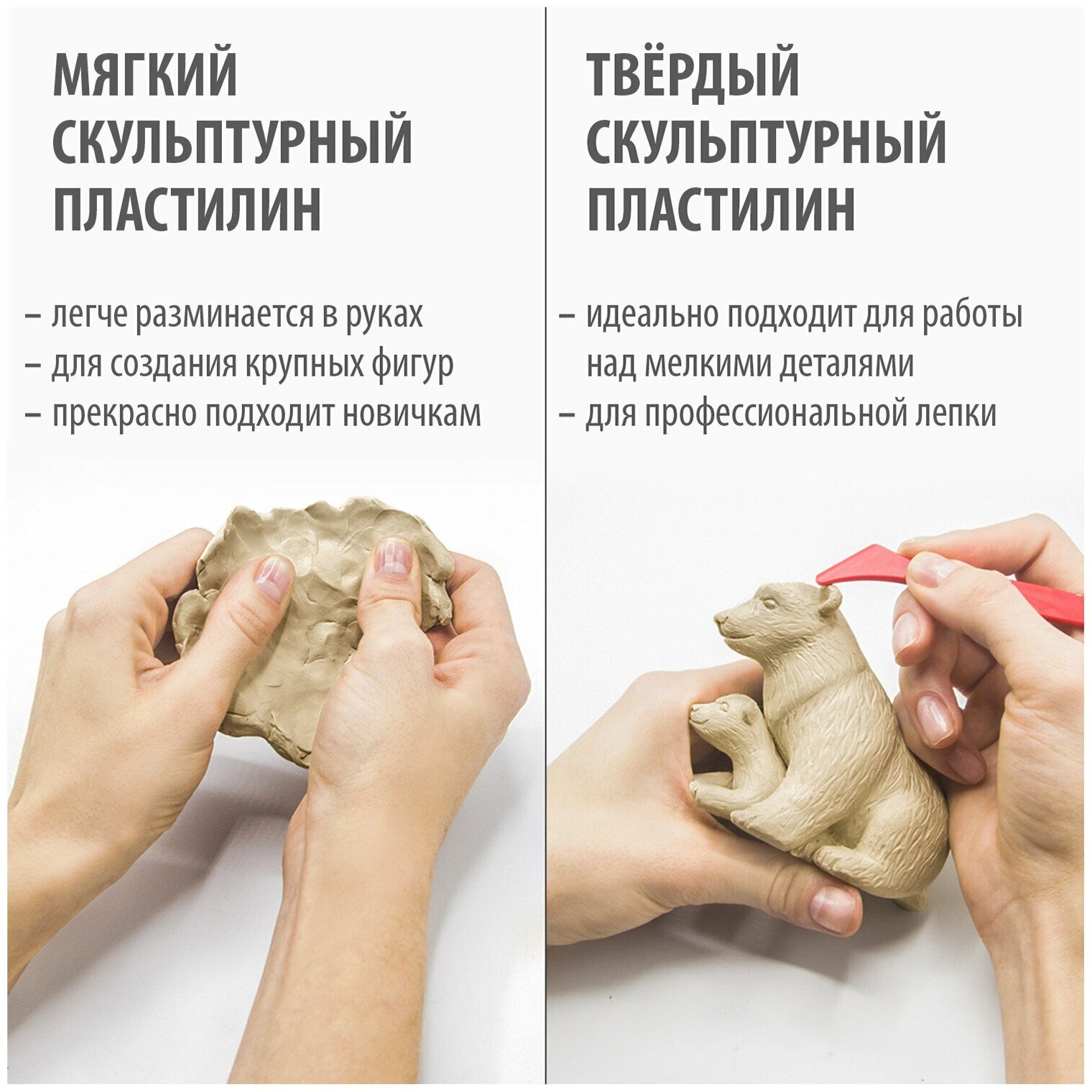 Отлично держит форму и устойчив к перепадам температуры. Не оставляет пятен, не липнет к рукам. Твердый пластилин необходимо дольше разогревать, фигуры из такого пластилина лучше сохраняют форму. Пластилин весом 1 кг упакован в полипропиленовую пленку.