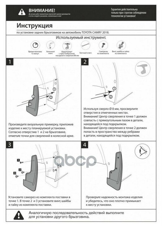 | Комплектация | 2 брызговика, крепеж, инструкция, упаковка |