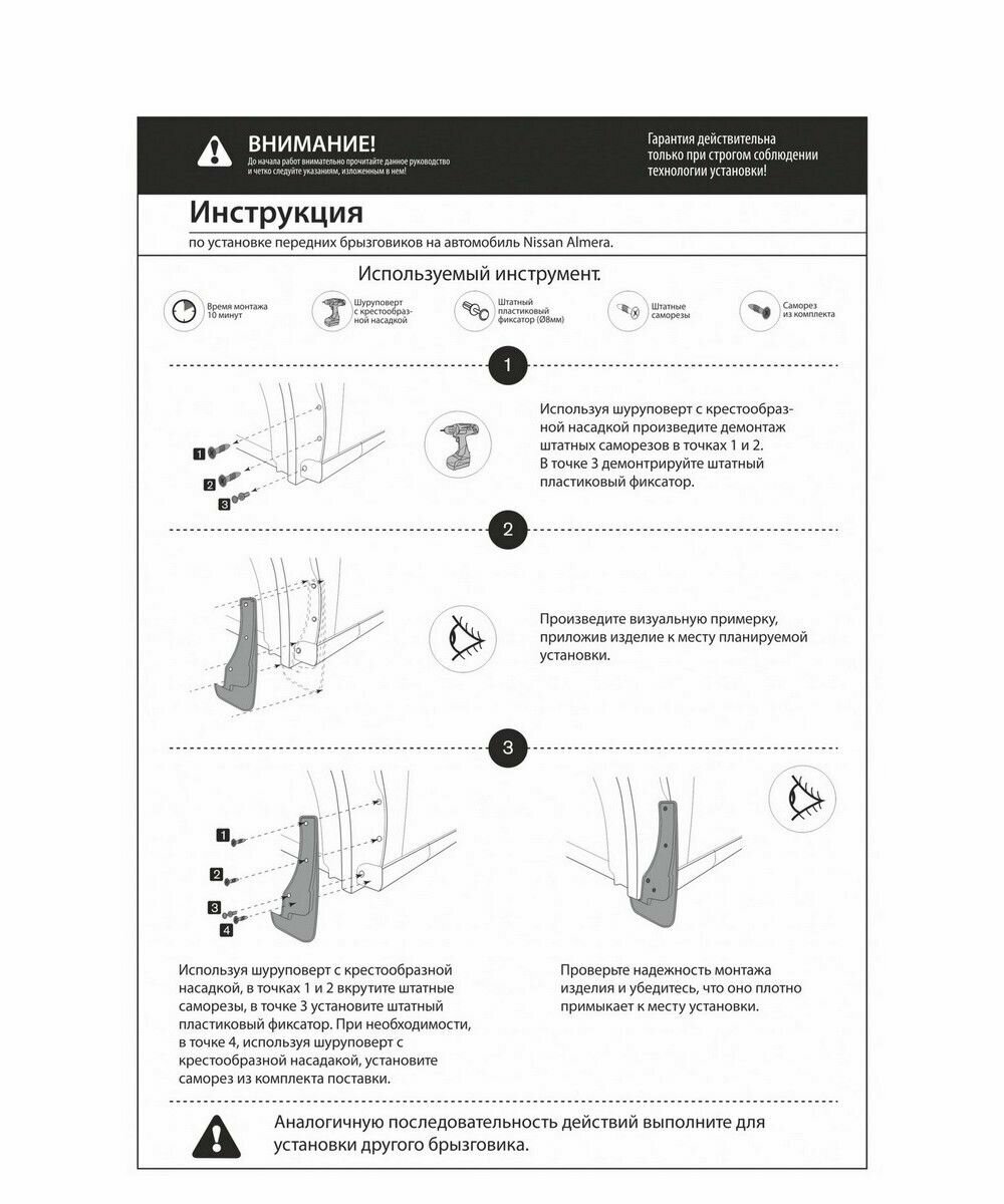 | Наименование модели | Брызговики передние Rival для Nissan Almera G15 седан 2012-2018, полиуретан, 2 шт., с крепежом, 24101001 |