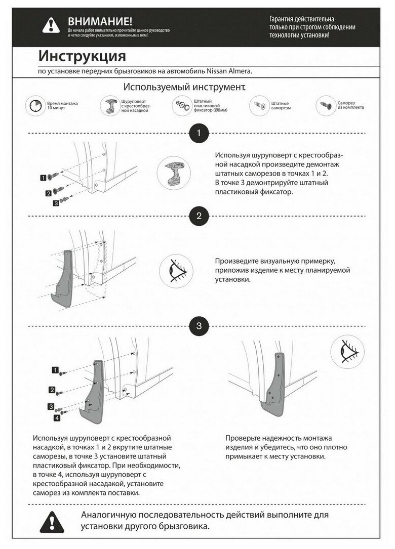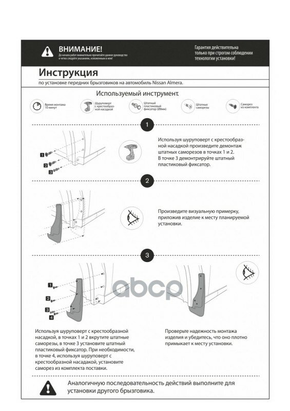| Комплектация | 2 брызговика, крепеж, инструкция, упаковка |