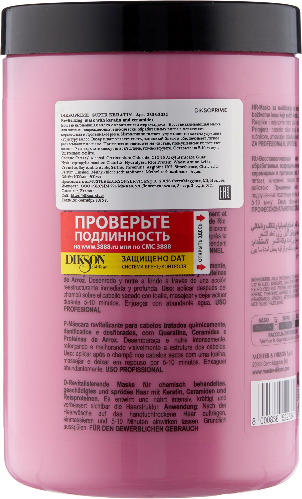 Сервис сравнения цен СкидкаГИД предлагает сравнить цены на товар «Восстанавливающая маска с кератином для волос Revitalizing Mask 1000 мл Dikson (ЭХ99989439975)»