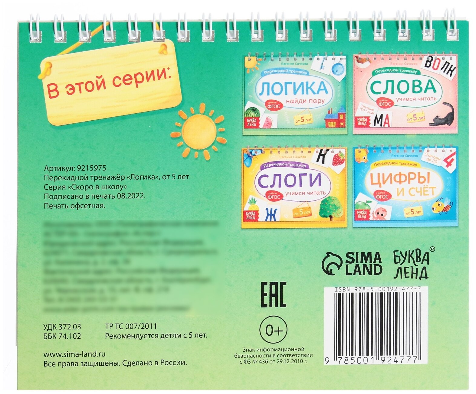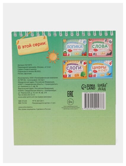 Сервис сравнения цен СкидкаГИД предлагает сравнить цены на товар «Книга: Перекидной тренажёр Логика. Найди пару от 5 лет (Сачкова Евгения Камилевна); Буква-Ленд, 2022»