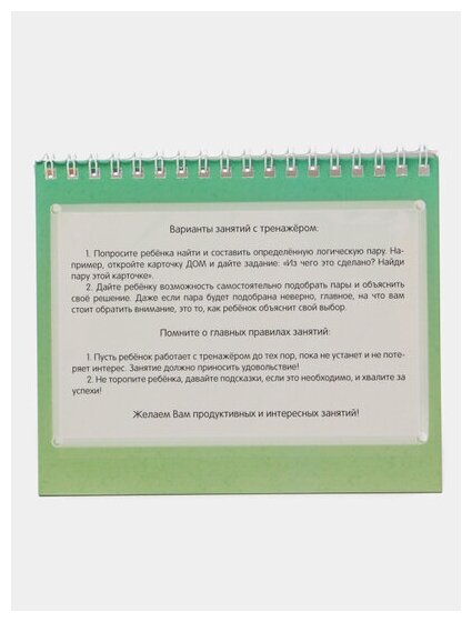 Сам тренажёр состоит из пар карточек. Задача ребёнка - найти соответствие между карточками по заданному признаку.