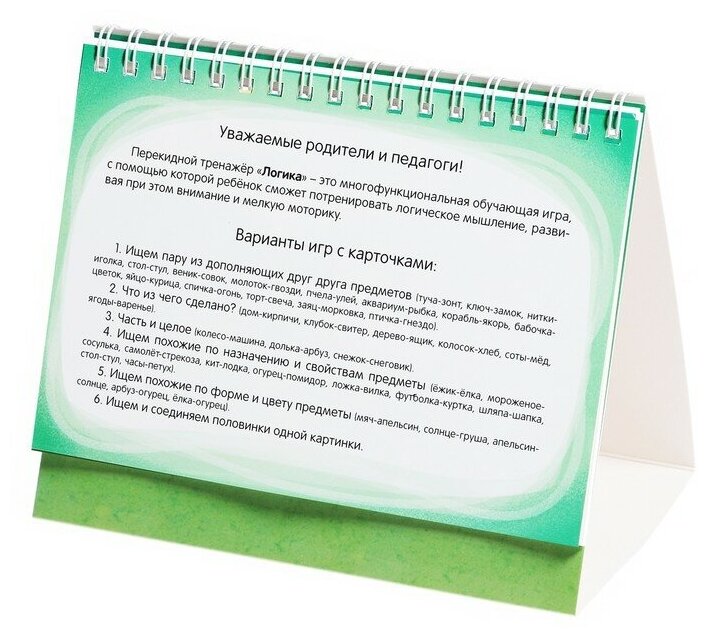 Перекидной тренажёр направлен на развитие логического мышления. С помощью этой многофункциональной игры ребёнок потренирует мышление, мелкую моторику, память и внимательность.
