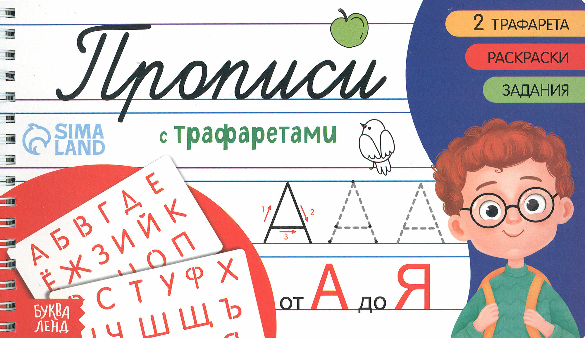 Прописи с трафаретами От А до Я; Буква-ленд, 2022