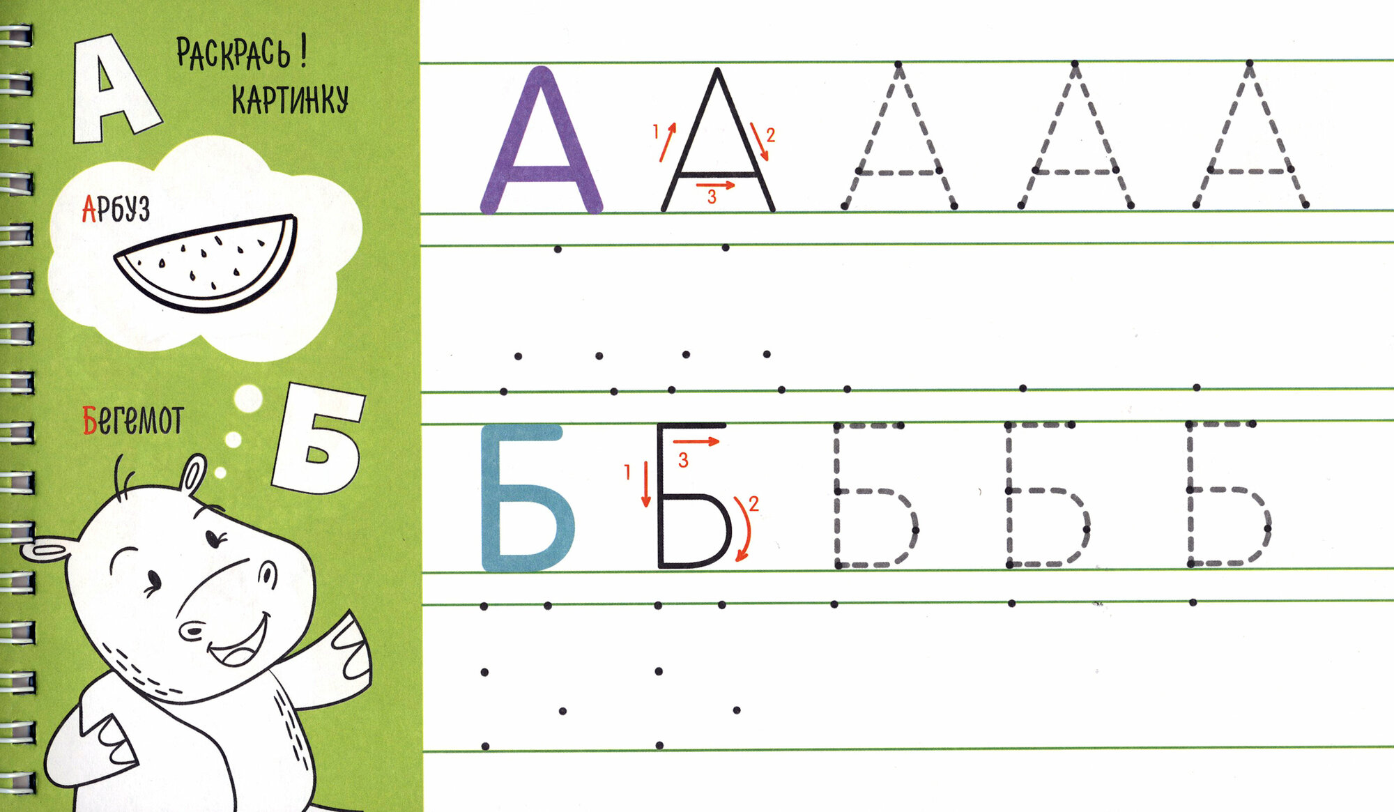 Много разнообразных заданий: ребёнку предстоит обводить элементы по пунктирным линиям и писать самостоятельно, а также раскрашивать и выполнять другие интересные миссии.